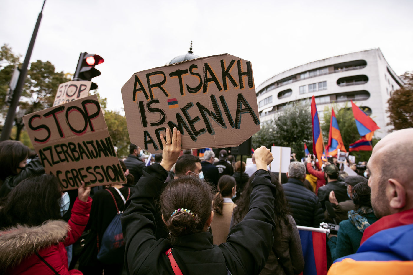 Rassemblement d'Arméniens de France pour exprimer leur solidarité avec les peuples d'Artsakh et d'Arménie qui résistent contre l'agression militaire turco-azerbaïdjanaise.