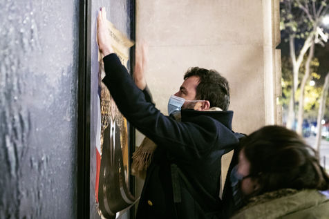 Session de collages contre Amazon dans les rues de Paris.