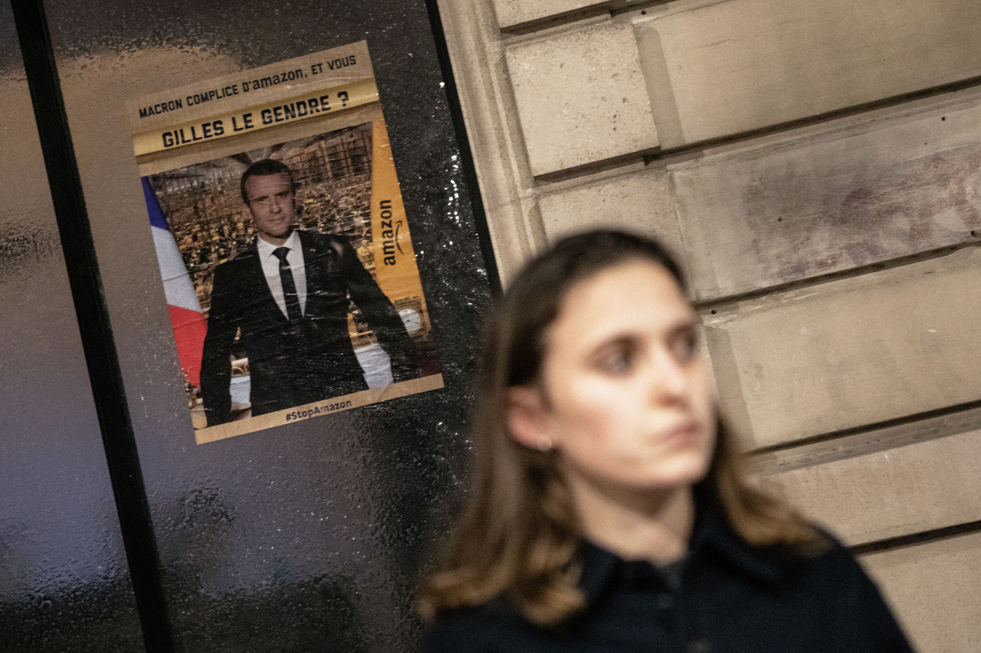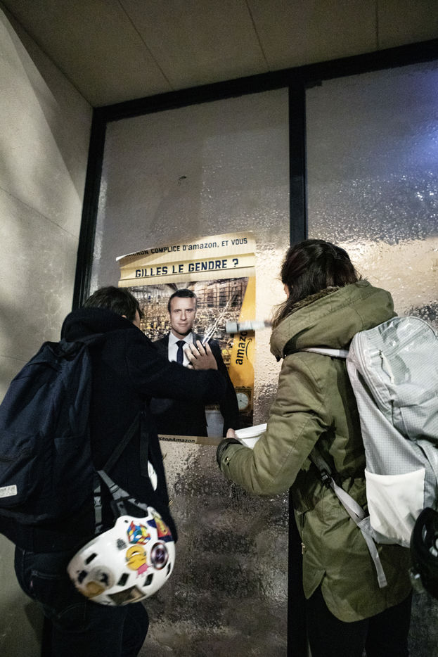 Collage session against Amazon in the streets of Paris.