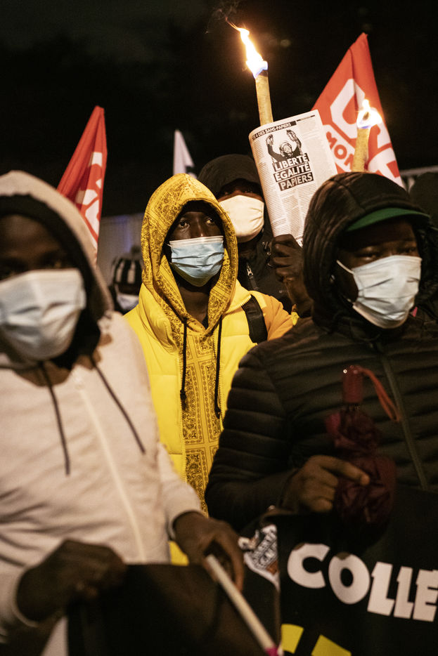 Torchlight procession of undocumented workers in Montreuil