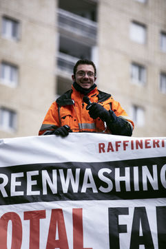 Rally in support of the Granpuits refiners who have been on strike for a month, to fight against the social plan planned by the oil giant.