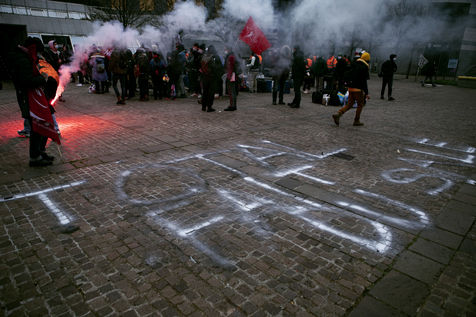 Rassemblement de soutien aux raffineurs de Granpuits en grève depuis un mois, pour lutter contre le plan social prévu par le géant pétrolier.