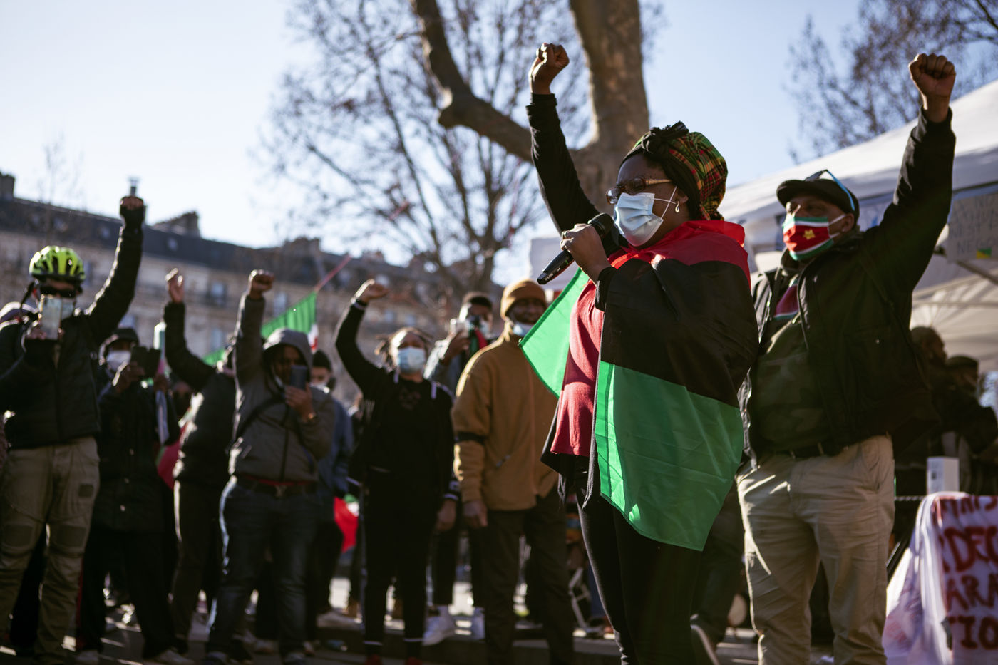 Place de la République rally organised by the Kolèktif Doubout Pou Gwadloup, in support of all the victims poisoned by chlordecone in Guadeloupe and Martinique and to demand the condemnation of the poisoners and the complicit French state.