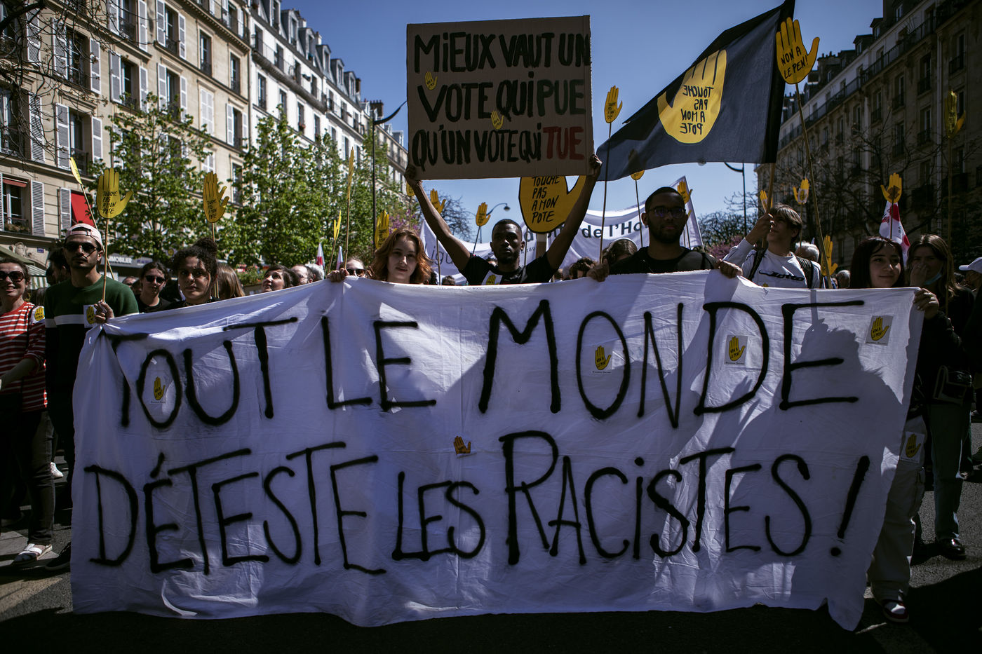 Manifestation contre le fascisme, le racisme et l'extrême droite avant le second tour des présidentielles qui oppose Le Pen et Macron.