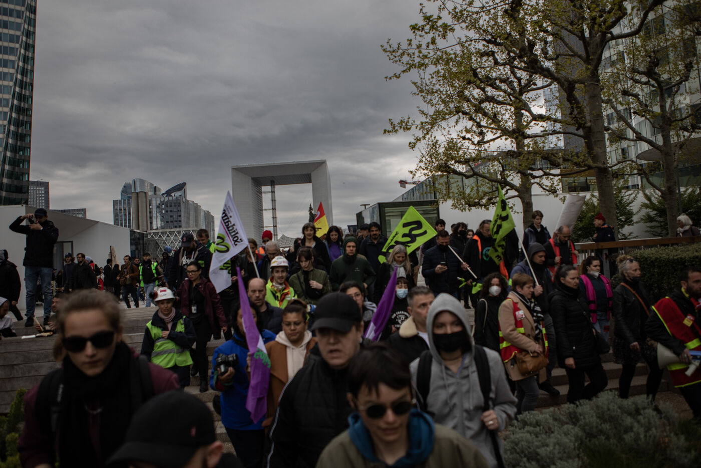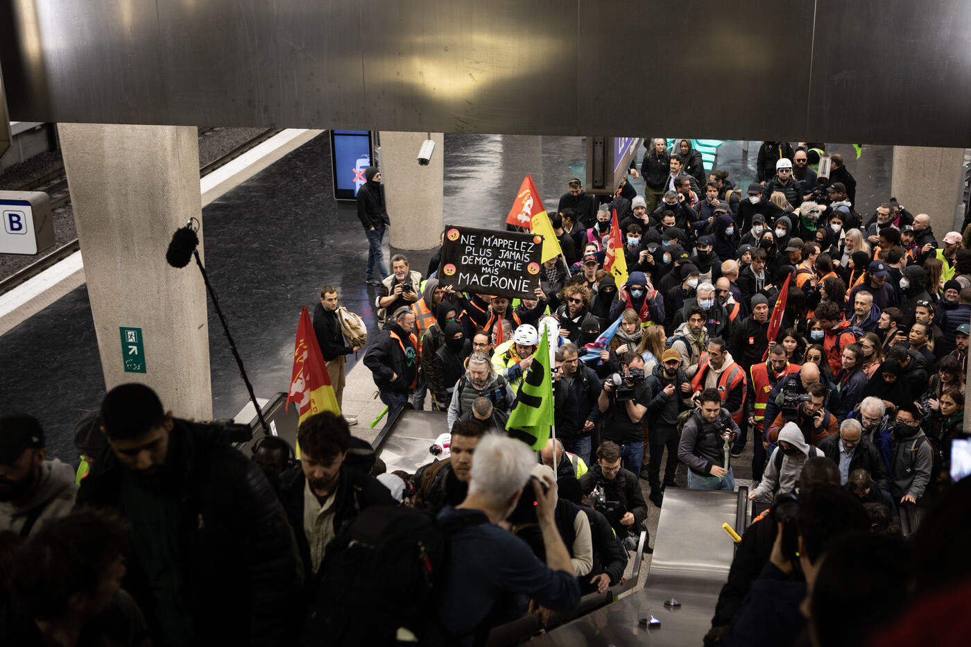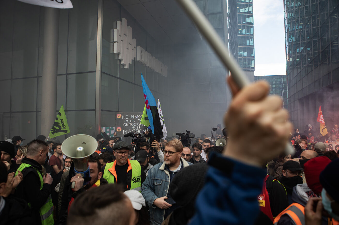 Action of the railway workers. They invade the Euronext tower, the Bourse de la Défense against the pension reform.