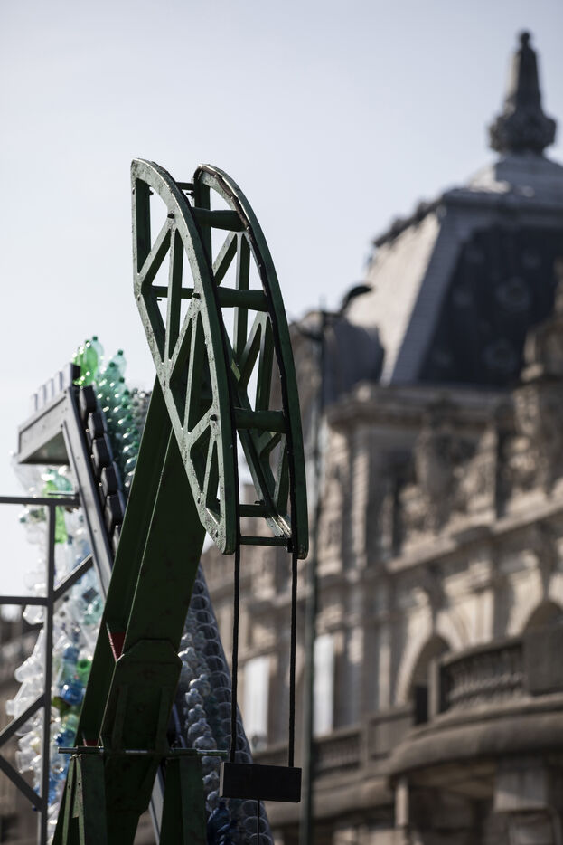 Installation artistique en plastique par Greenpeace