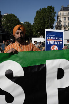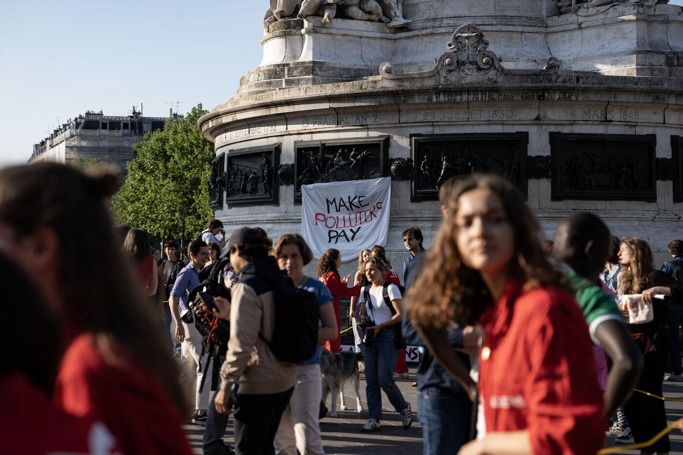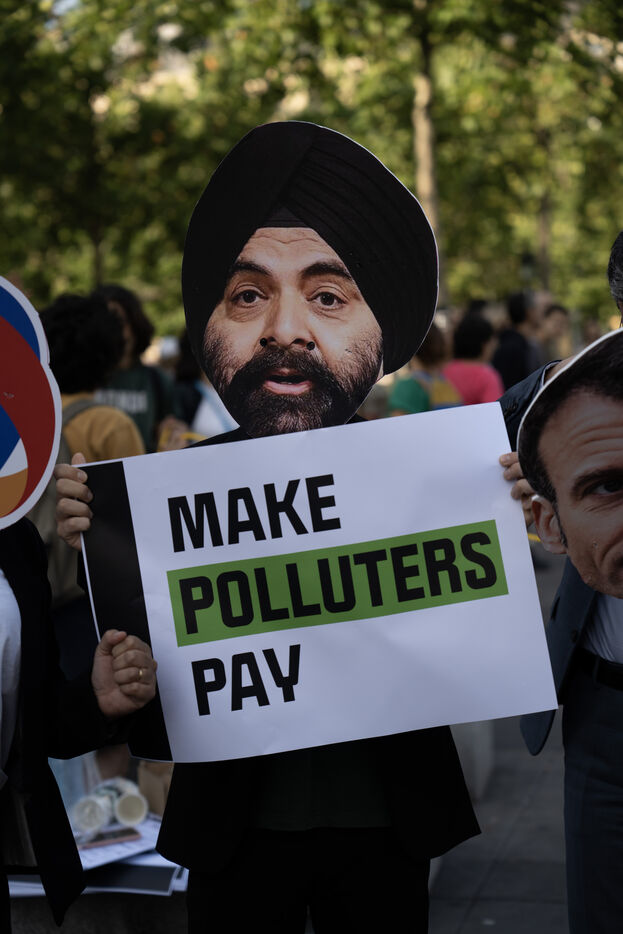 En marge du somment pour un nouveau pacte financier mondial, un rassemblement est organisé par plusieurs ONG pour demander la fin des financements fossiles.