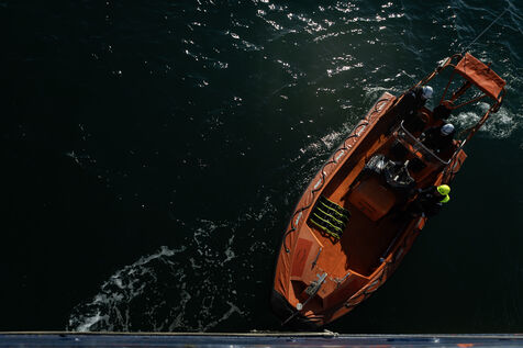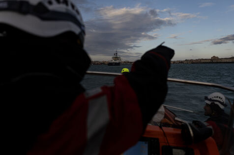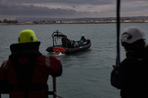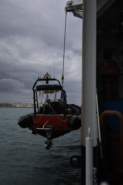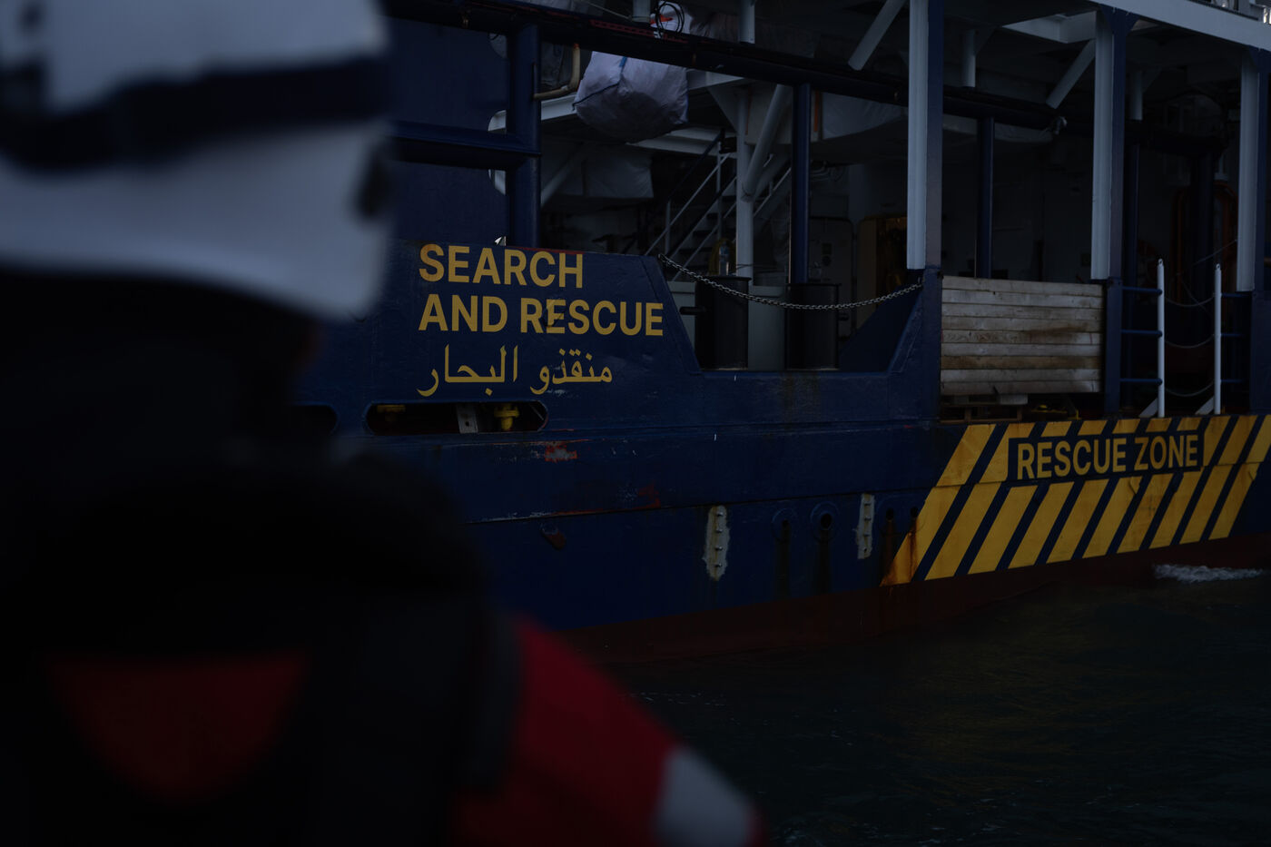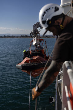 Illustration du bateau humanitaire Sea Watch 5 ainsi que ses entrainements de sauvetage avant les missions de sauvetage de migrants en Méditerranée.