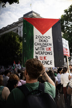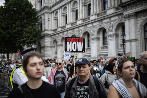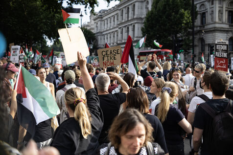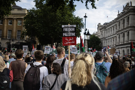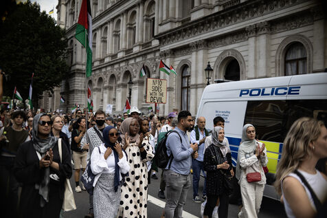 Pro-Palestinian demonstration with saucepans and cooking utensils in front of Downing Street in support of the Palestinian people.