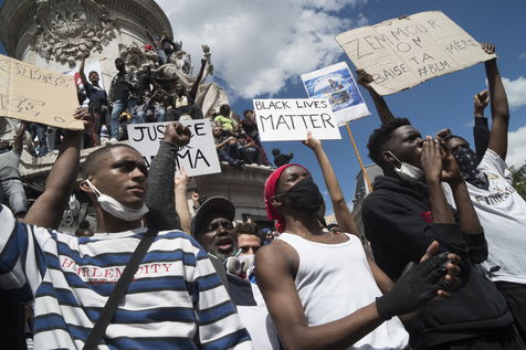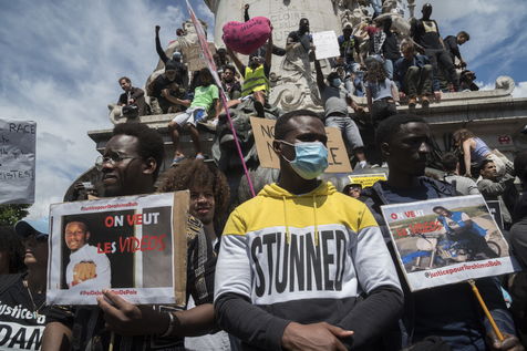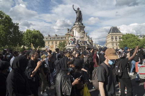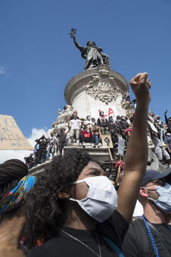A Paris, manifestation massive en mémoire d'Adama Traoré et George Floyd. Black Saturday à Place de la Republique, Paris. Alors que les Etats-Unis se déchirent la meme semaine d'enterrement de George Floyd. Au moins 20 000 personnes ont bravé l'interdiction de manifester et répondu à l'appel du collectif «Vérité pour Adama Traoré».