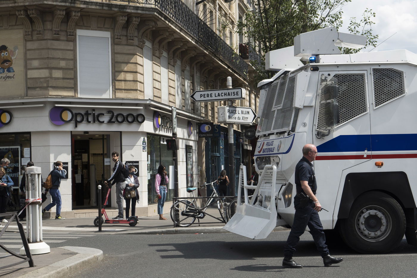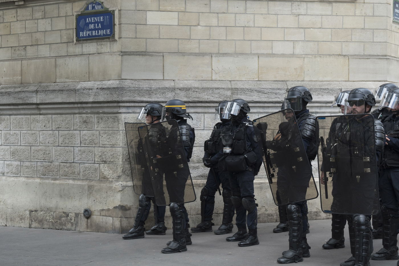 Des milliers des police controles les manifestants, qui manifestent dans le respect de la mort de Noirs en garde a vue. Samedi noir commemoration de la mort d Adama Traore et Lamine Dieng en France et de George Floyd aux Etats-Unis. Avenue de la Republique, Paris, 20 juin 2020.