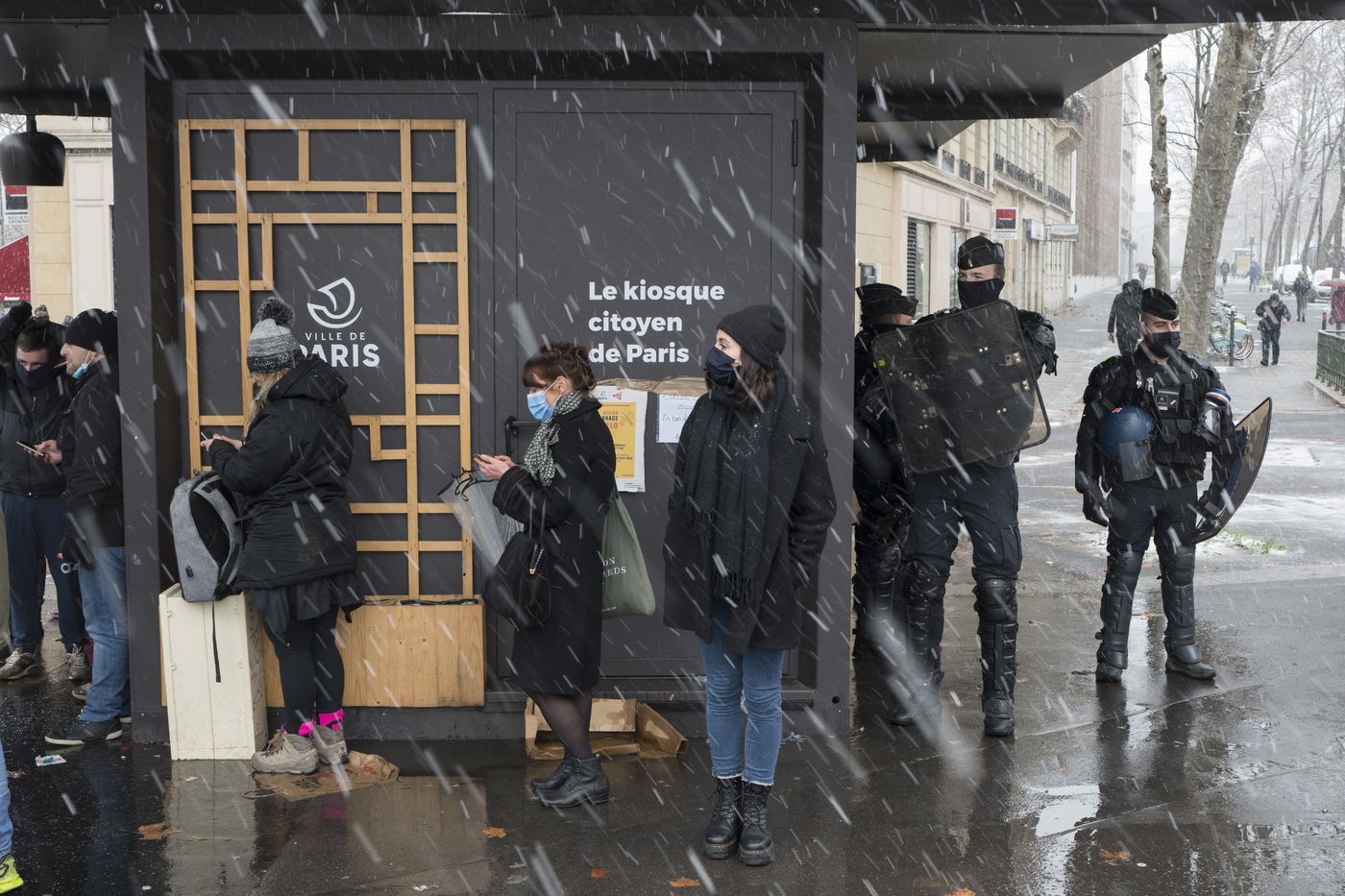 Des milliers de manifestants en France se sont rassembles pour la Marche des libertes pour protester contre le loi française, l article 24 de la Securite Globale, interdit la publication d images identifiant des policiers francais. Les journalistes et les organisations de defense des droits ont critique la nouvelle loi.