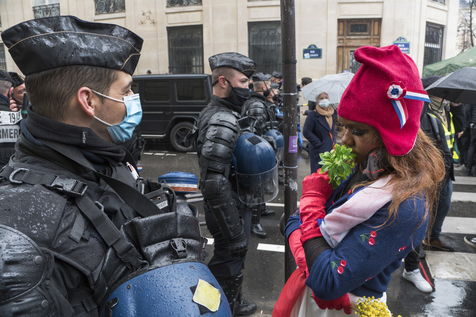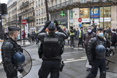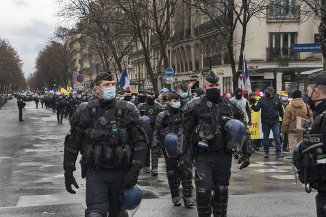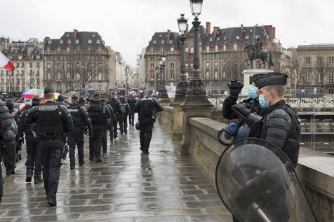 Des milliers de manifestants en France se sont rassembles pour la Marche Unitaire des libertes pour protester contre le loi française, l article 24 de la Securite Globale, interdit la publication d images identifiant des policiers francais. Les journalistes et les organisations de defense des droits ont critique la nouvelle loi. Forte presence policiere lors de la manifestation.