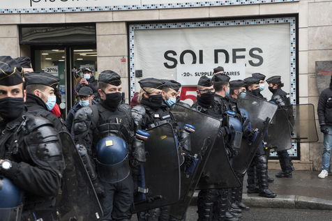 Thousands of demonstrators across France gathered for the United Freedom March to protest against Article 24 of the Global Security laws, which bans publication of images identifying French police officers. Journalists and rights organisations have criticised the new law. Heavy police presence at demonstration.