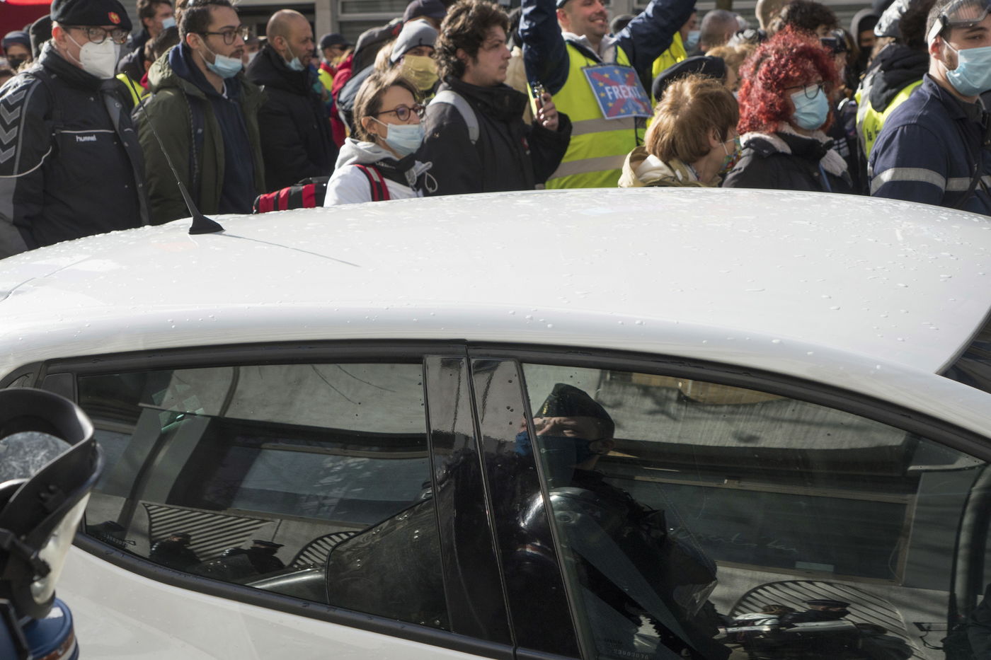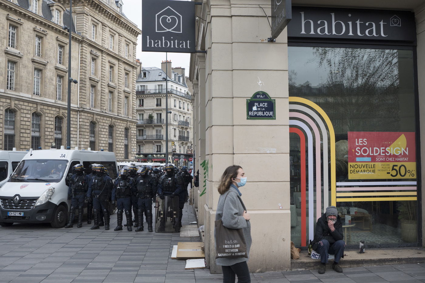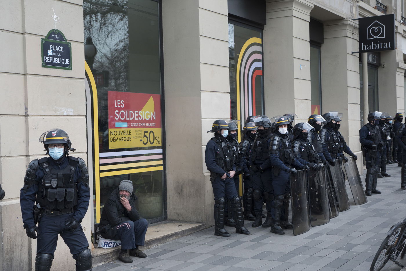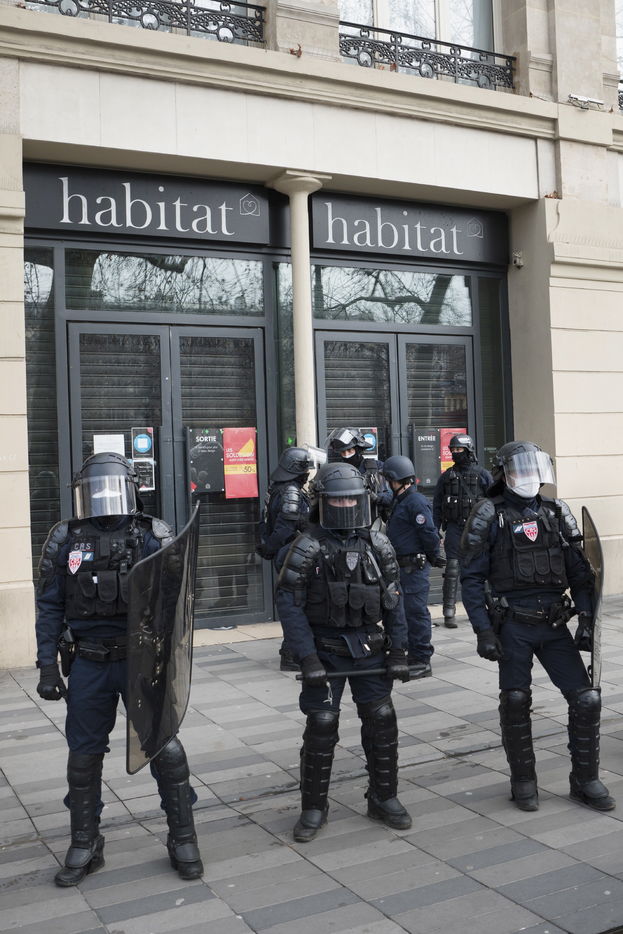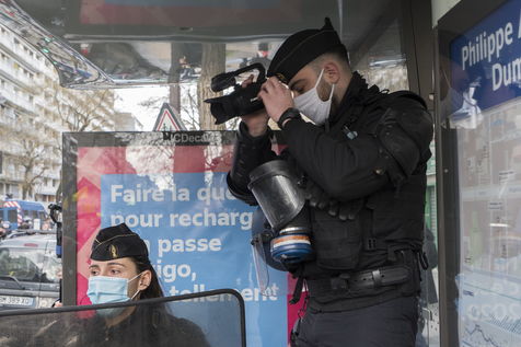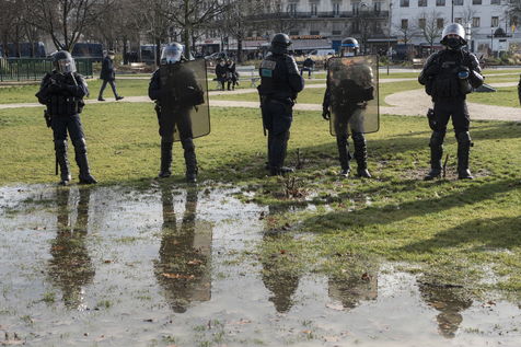 Strong police presence during the demonstration. Thousands of demonstrators in France gathered for the Unitary March of Freedoms to protest against French law, Article 24 of Global Security, bans the publication of images identifying French police officers. Journalists and rights groups criticized the new law