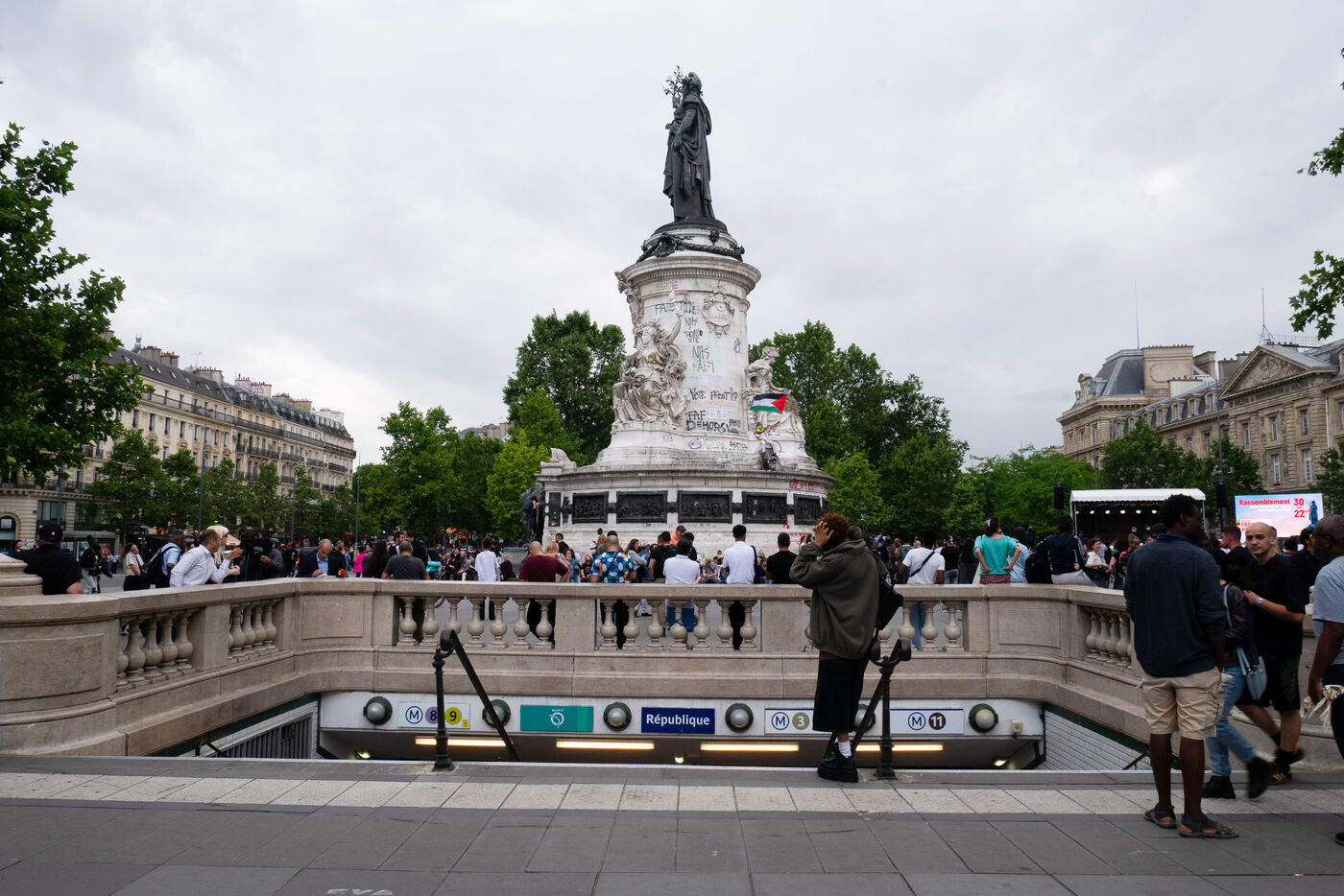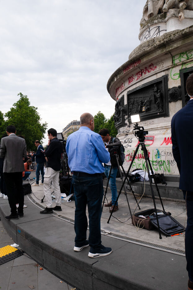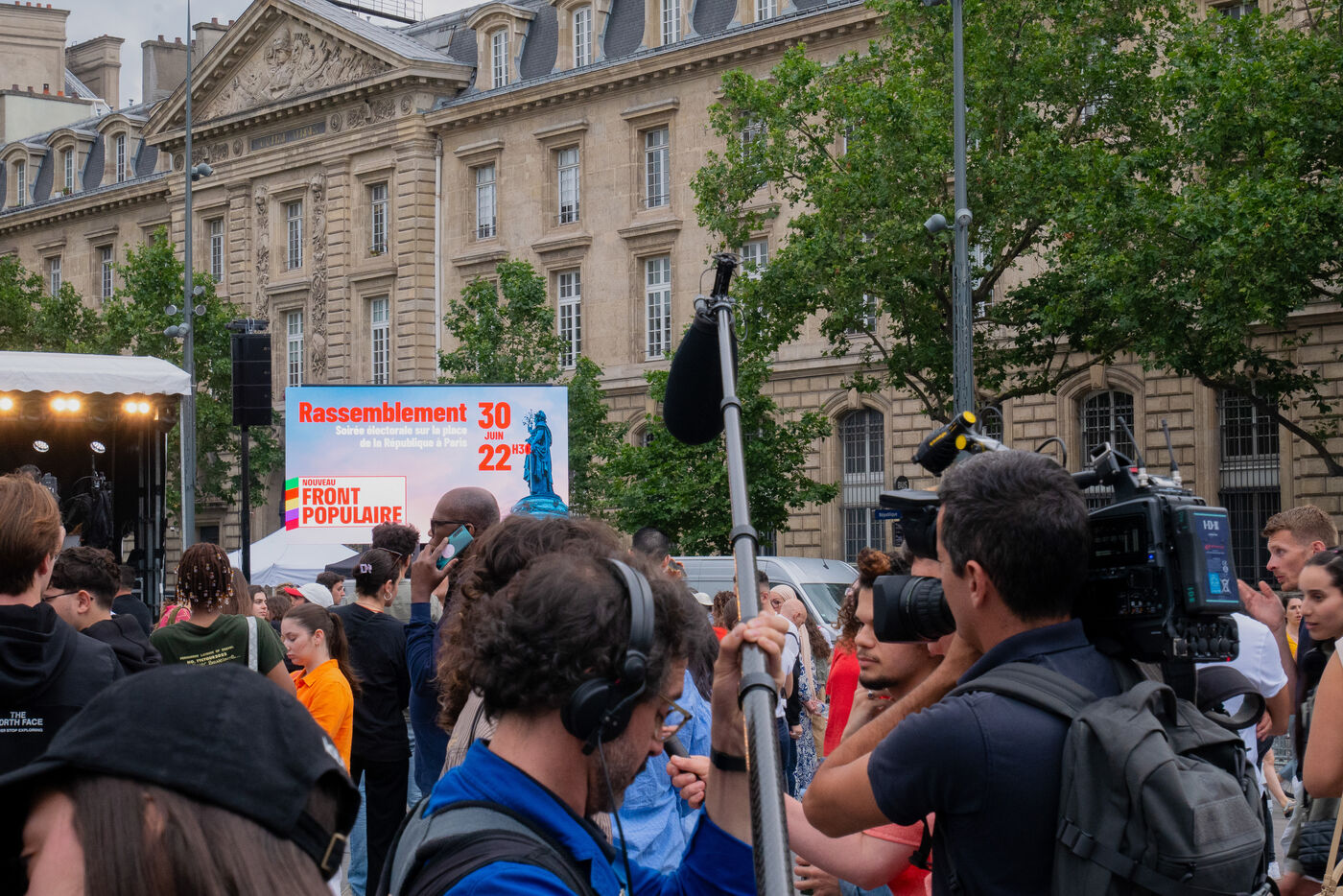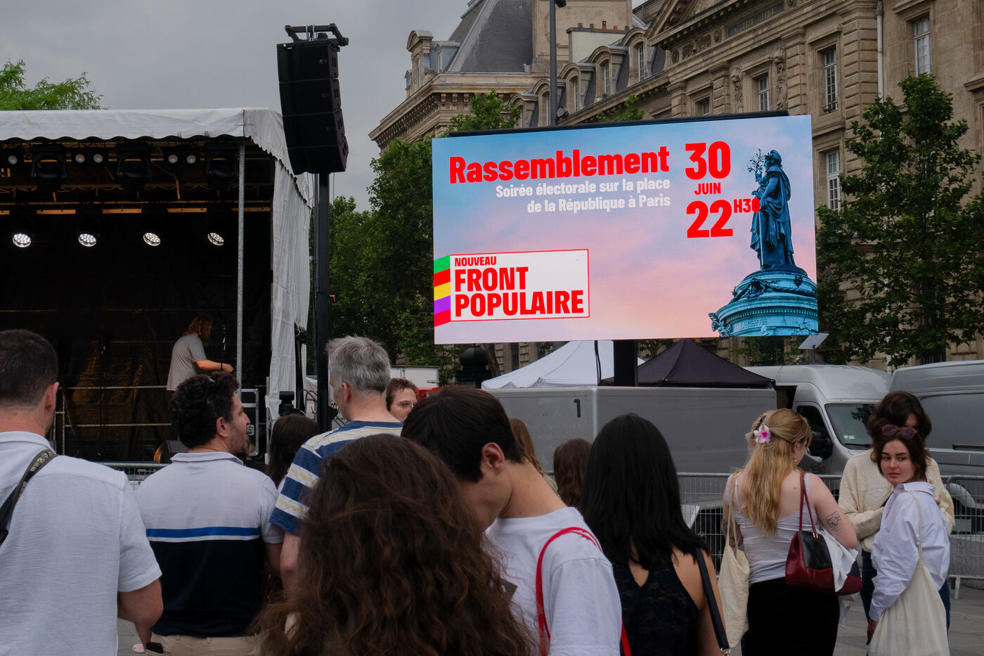 At around 8pm on Sunday 30 June 2024, the first estimates of the first round of the results of the legislative elections appeared. A number of people, journalists and television cameras were present on the Place de la Répubilique, the venue for the Nouveau Front Populaire, to react to the results.