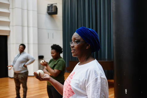 Régine Chopinot en résidence à l'Opérat de Paris Bastille anime des ateliers de pratique chorégraphique qui accueillent des personnes en situation d?exil, en apprentissage de la langue française ou en situation de précarité.