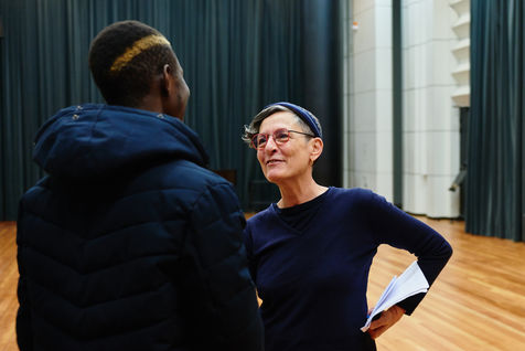 Régine Chopinot in residency at the Opéra de Paris Bastille leading choregraphic workshops that welcome people in exile, learning the French language or in precarious situations.