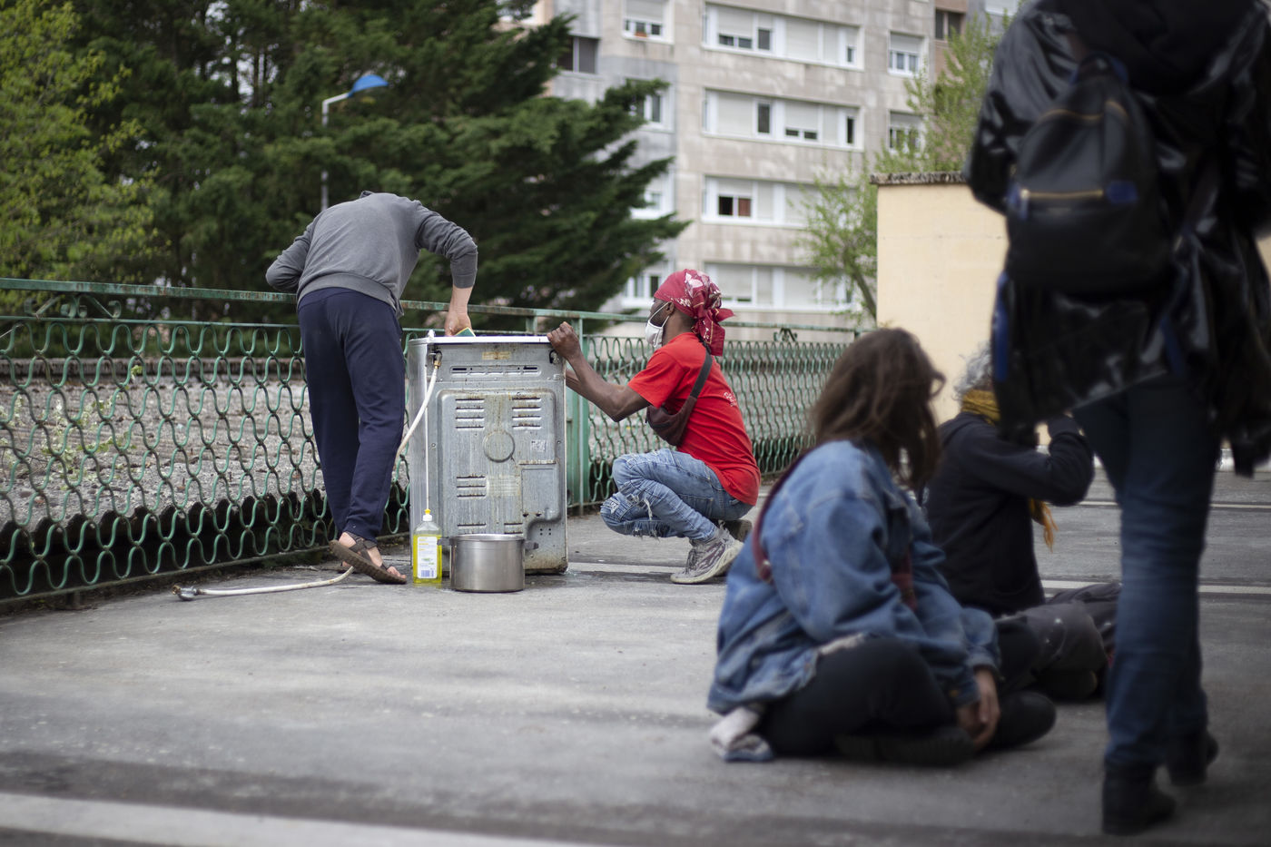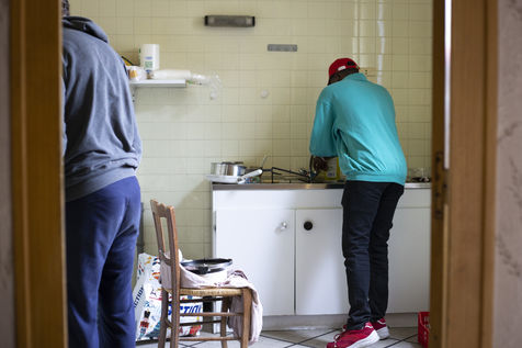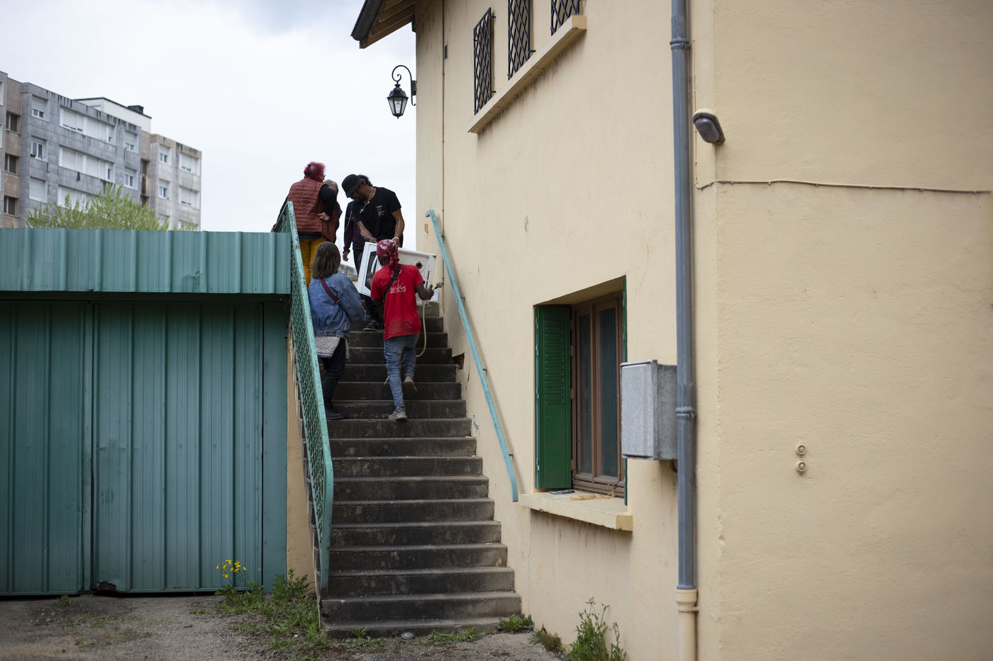 In Bourg-en-Bresse, the volunteers of the Collectif Solidarité Migrants came to bring basic equipment to the fourteen people living in an emergency house.