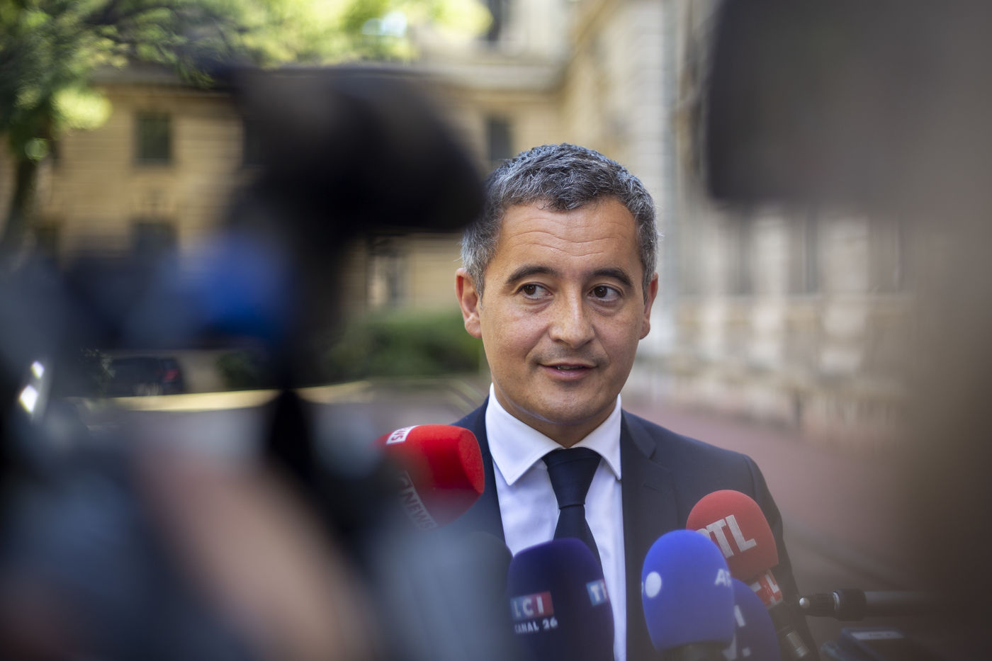 Gérald Darmanin, ministre de l'Intérieur et des Outre-mer, à la préfecture du Rhône, dix jours après les violences sur trois policiers en civils au quartier de la Guillotière.