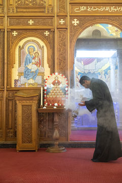 Mariam, la femme du martyr Samuel, a discretement ouvert la porte du sanctuaire familial a cote de l autel, se trouve une armoire avec les affaires de son mari, dont une chemise aux effets miraculeux.