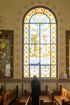 Mariam, the wife of the martyr Samuel, discreetly opened the door of the family shrine. Next to the altar is a cupboard with her husband's belongings, including a shirt with miraculous effects.