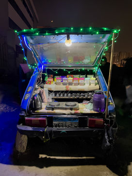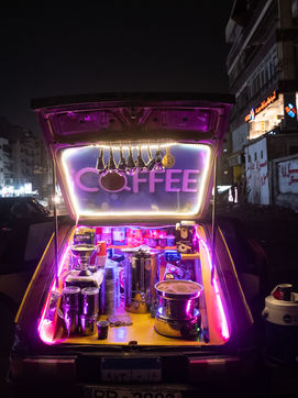 Facilement identifiables la nuit car elles sont illuminees, les voitures-cafe sont garees dans les quartiers residentiels et en peripherie urbaine et proposent toutes sortes de cafes et de boissons chaudes et traditionnelles.
