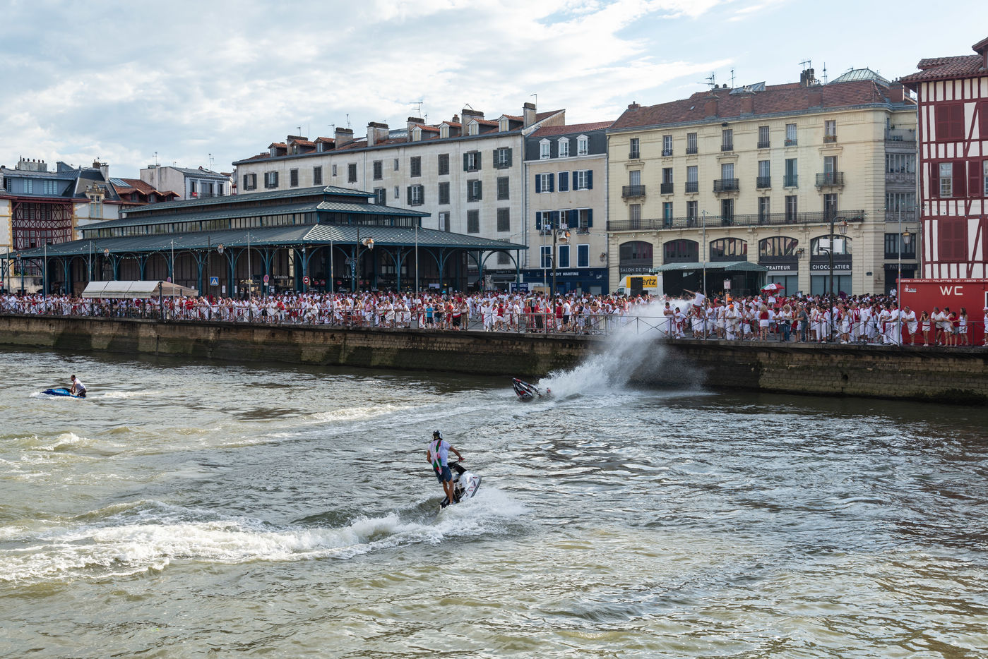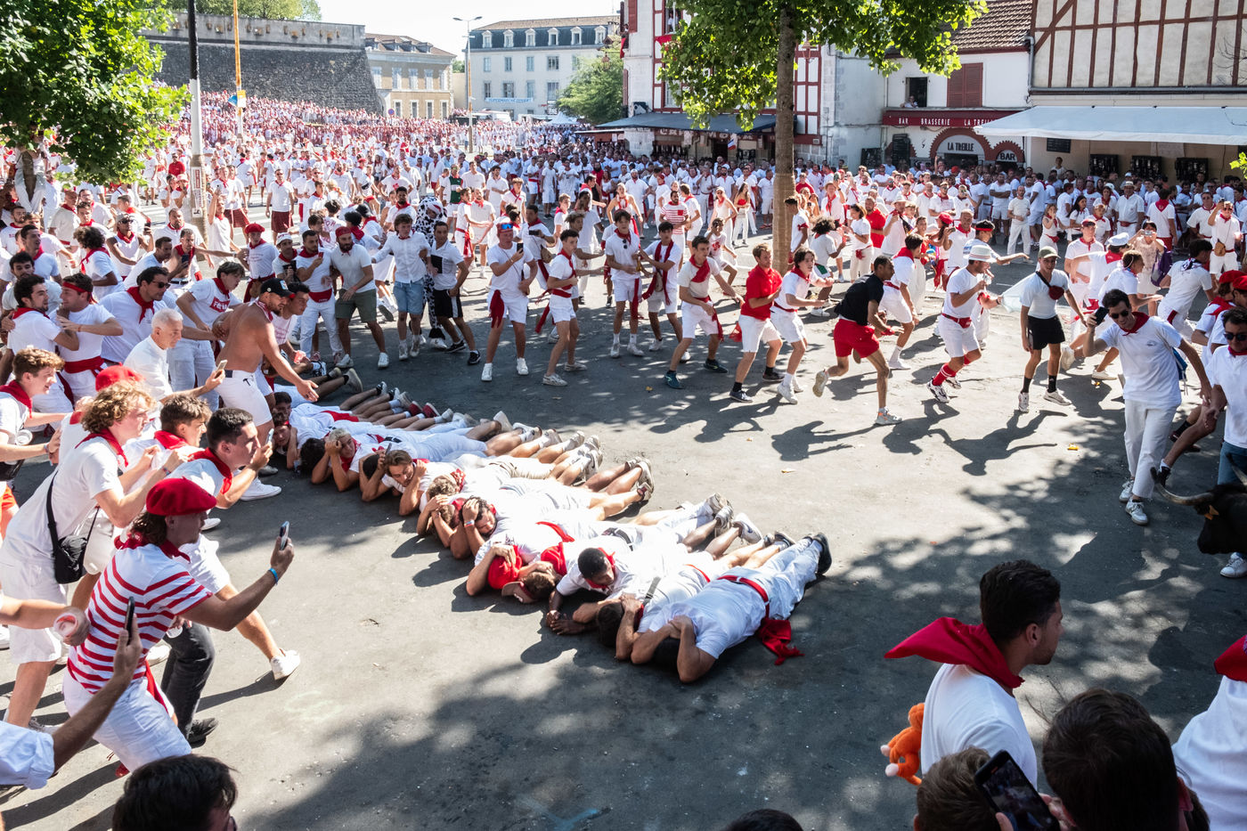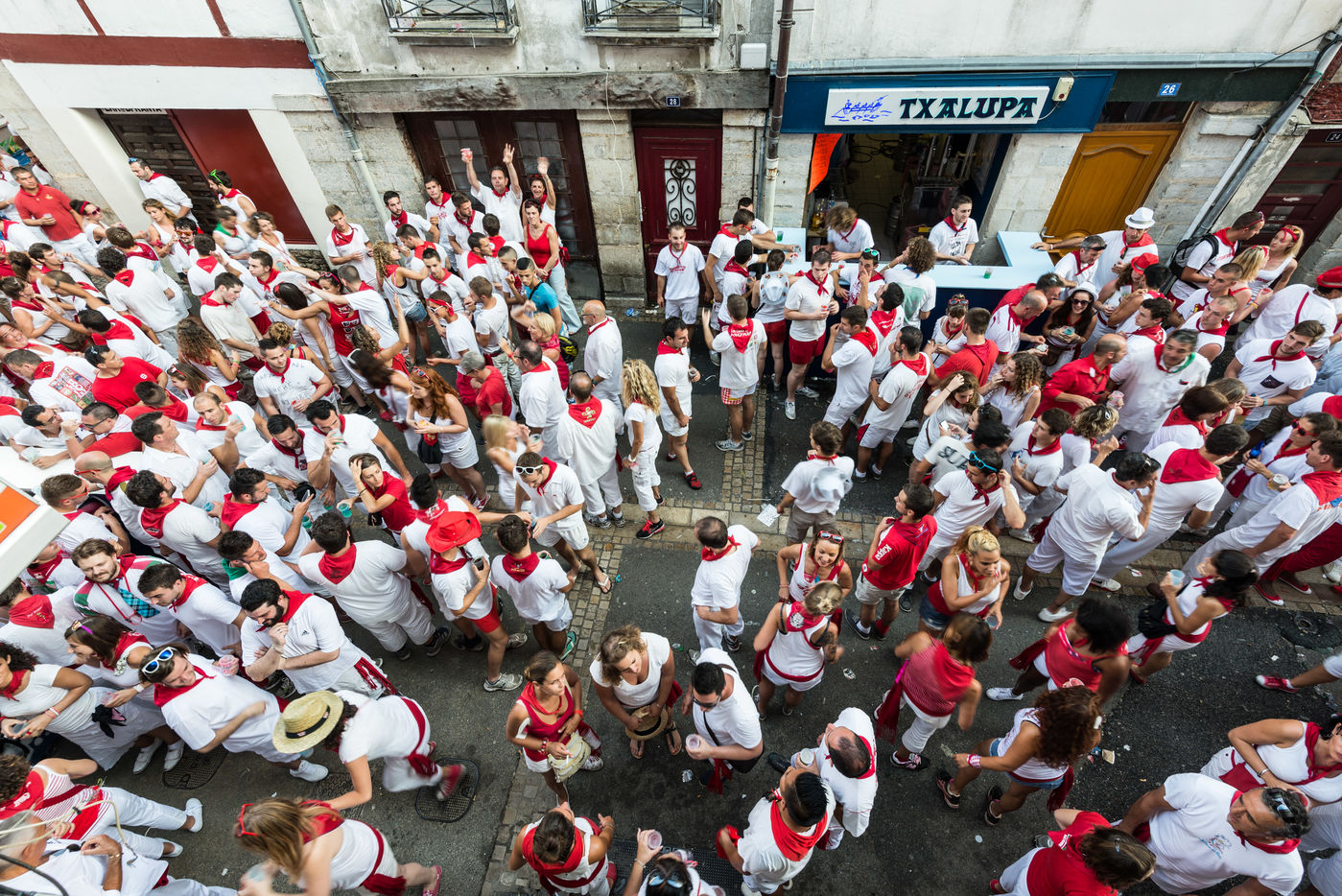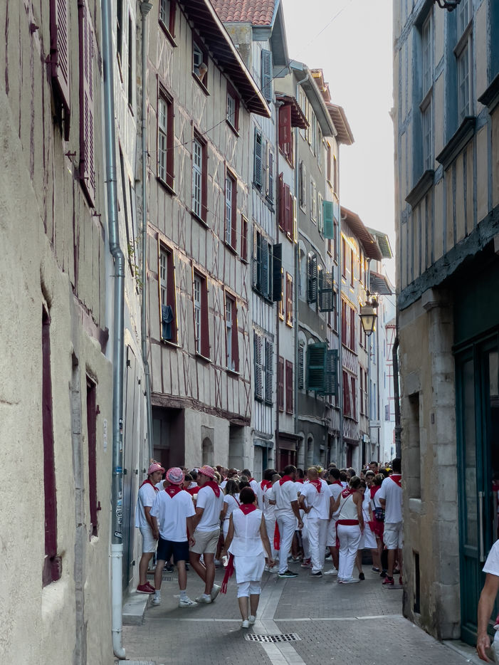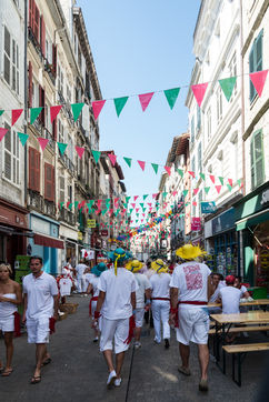 The city of Bayonne receives several hundred thousand people during the five days of the festival. The streets are often crowded with people dressed traditionally in red and white, going from one bar to another, chatting and celebrating