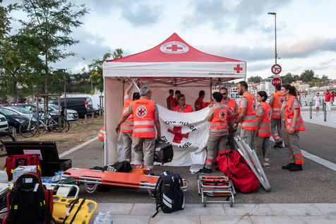 First aid posts, fixed (on two sites) or temporary, have been set up and administered in good agreement by two key players in the associative landscape, the French Red Cross (CRF) and Civil Protection.