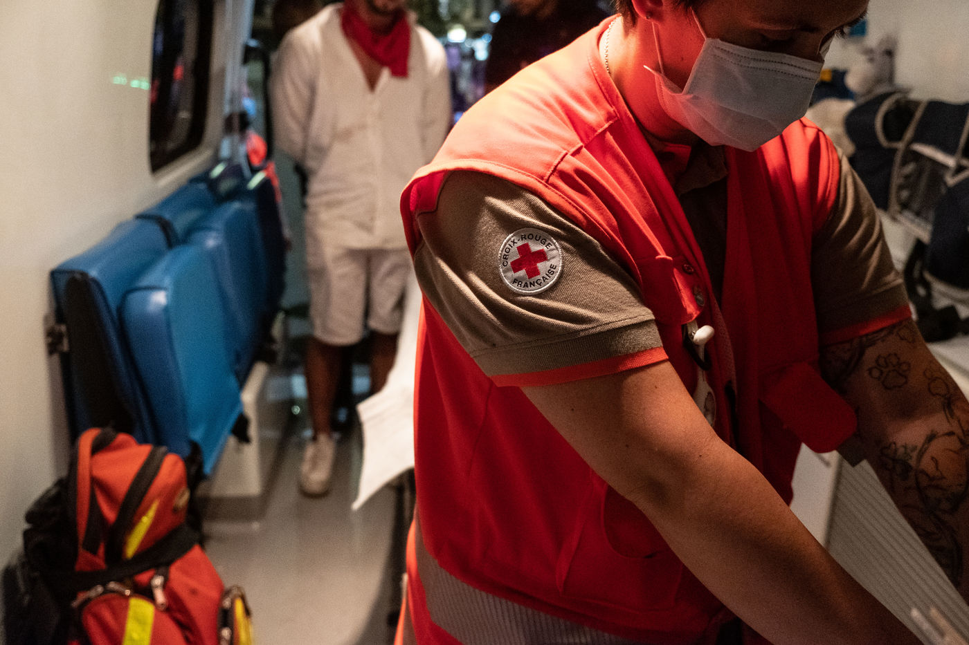 Immersed in the heart of the action, from the inside, behind the barriers, through the interventions of the volunteers of the French Red Cross.