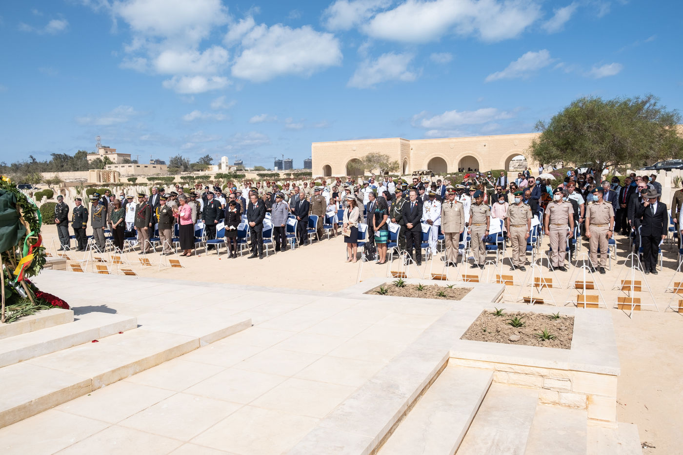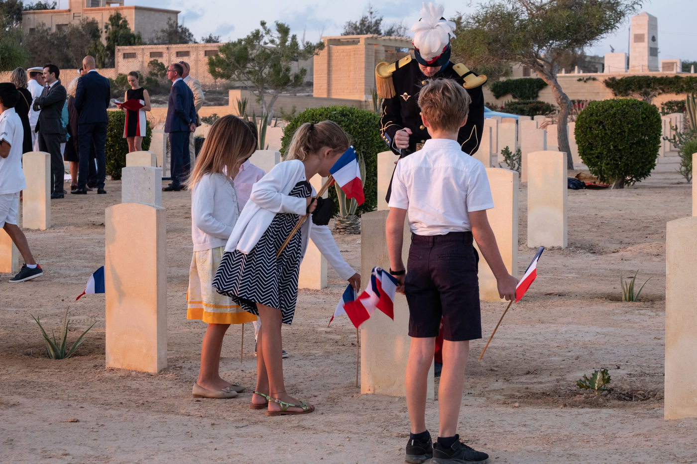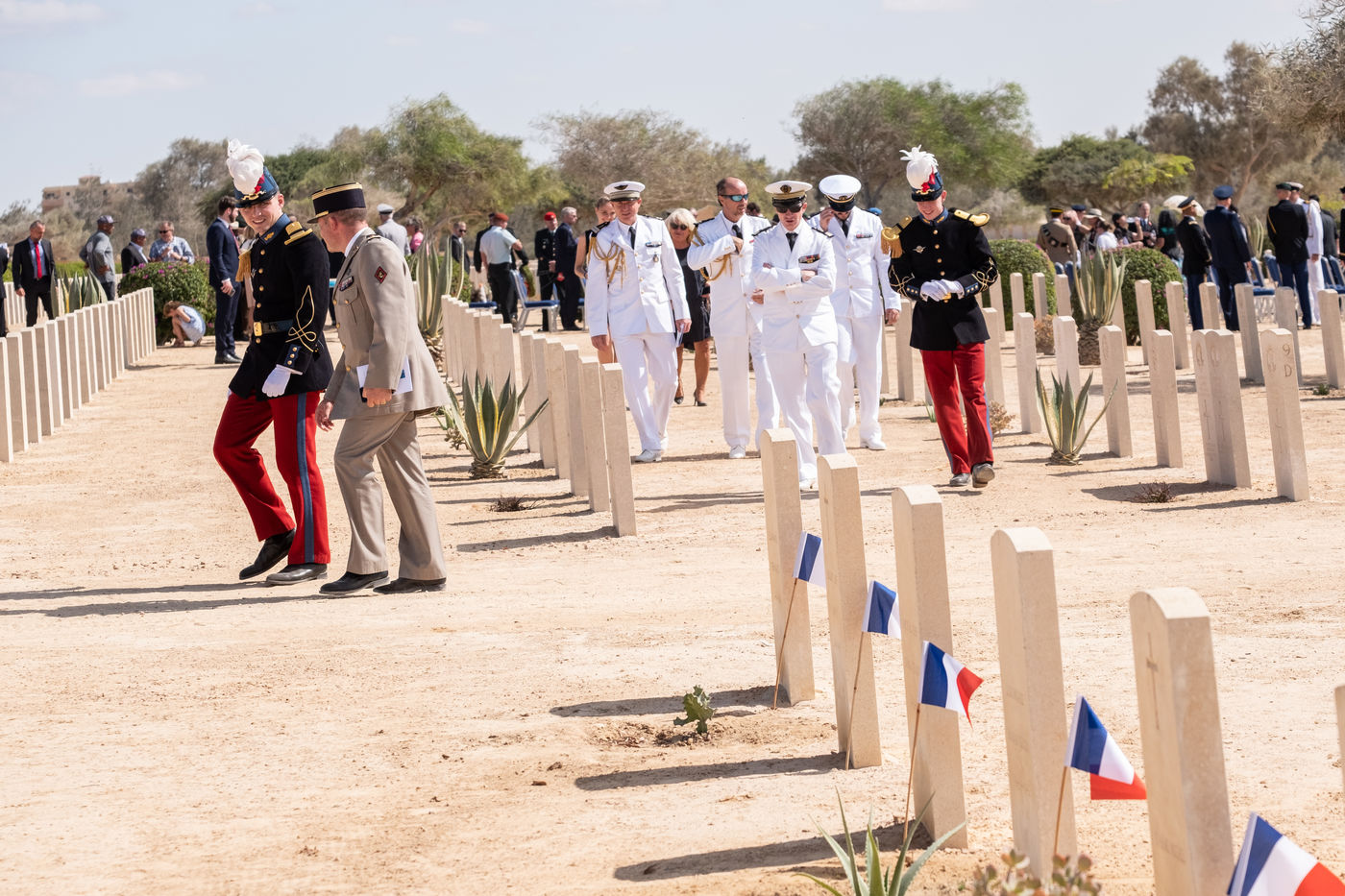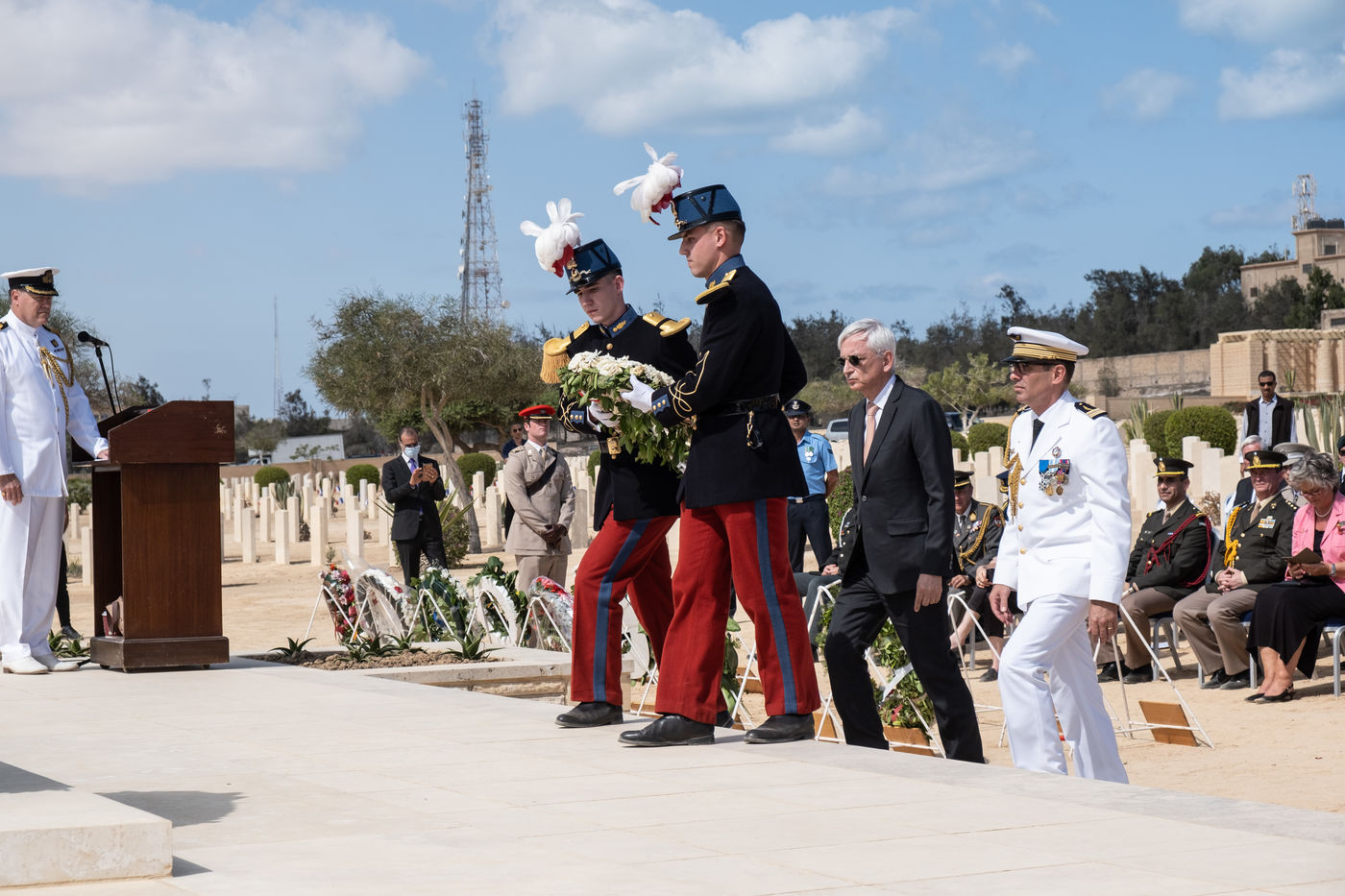 The numerous foreign diplomatic delegations gathered at the Commonwealth cemetery where a commemoration was conducted jointly by Reverend Joe Harvey (All Saints Cathedral in Cairo) and the British and German defence attachés. It was an opportunity to recall the end of hostilities and the duty of transmission, which is essential for mutual understanding. At the cemetery that day, Captain Stephen Deacon of the Royal Navy, British Defence Attaché, closed the ceremony by calling on the participants to forget their diplomatic differences, "to be friends and to talk", a good intention in this period of particularly marked tensions between France and England.