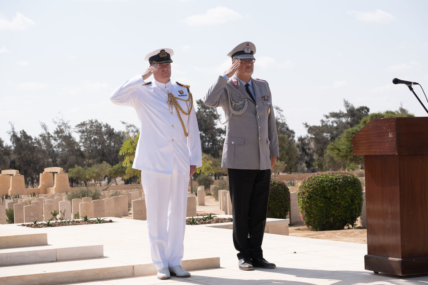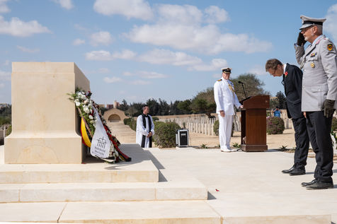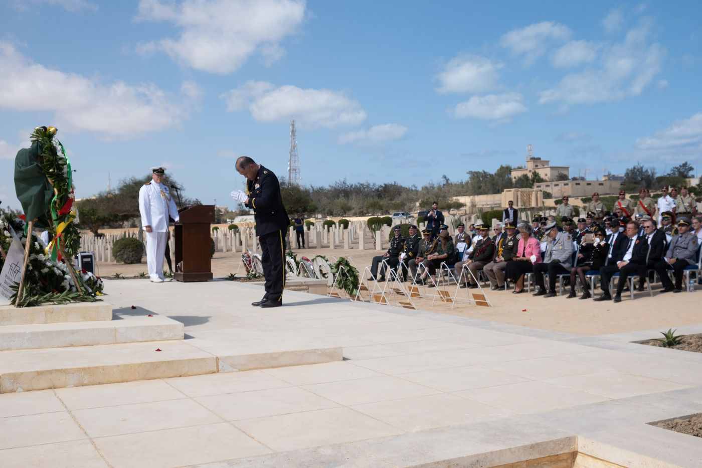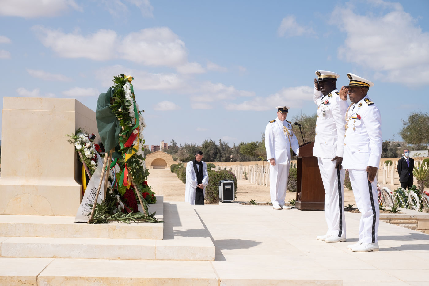 The numerous foreign diplomatic delegations gathered at the Commonwealth cemetery where a commemoration was conducted jointly by Reverend Joe Harvey (All Saints Cathedral in Cairo) and the British and German defence attachés. It was an opportunity to recall the end of hostilities and the duty of transmission, which is essential for mutual understanding. At the cemetery that day, Captain Stephen Deacon of the Royal Navy, British Defence Attaché, closed the ceremony by calling on the participants to forget their diplomatic differences, "to be friends and to talk", a good intention in this period of particularly marked tensions between France and England.