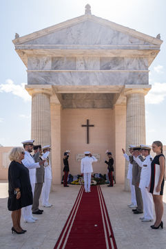 The delegations then took turns at the Greek, German and Italian memorials to lay wreaths and pay tribute to all the soldiers who died in October 1942.