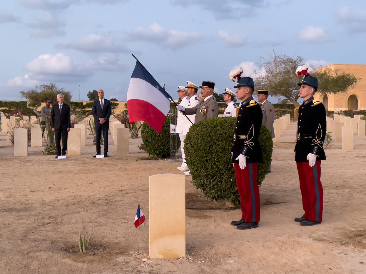 This year, France organised a very intimate ceremony, prior to the general ceremony. Organised by the Defence Mission in Egypt, it took place in the French section of the Commonwealth Cemetery, at the foot of the grave of Lieutenant Amilakvari, one of the mythical figures of the Foreign Legion. This is where most of the 53 French soldiers who are buried here are to be found.