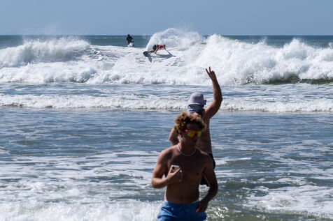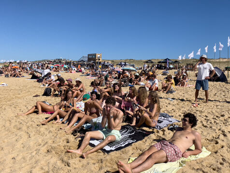 Sur le sable, ou dans l'eau, le festival attire des centaines de personnes qui viennent profiter du spectacle et du soleil, à l'affût des vagues et des stars du surf