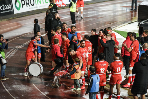 While the photographer was on ?the pitch?, the atmosphere in the stands before and after the match for this eagerly-awaited rugby derby which ended in jubilation for the people of Dacquais - April 26, 2024