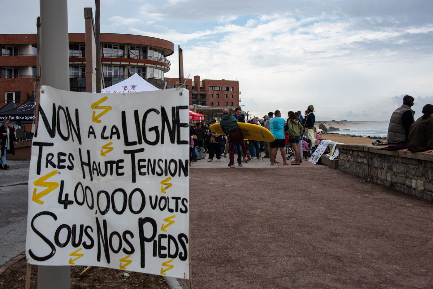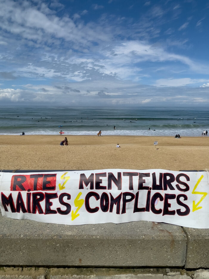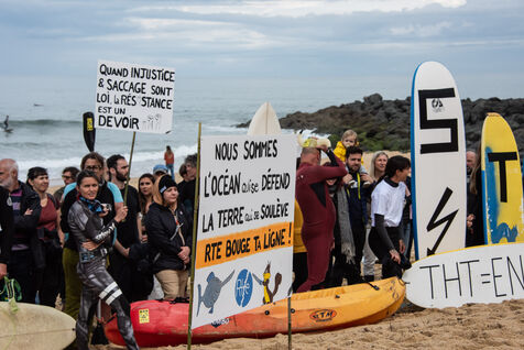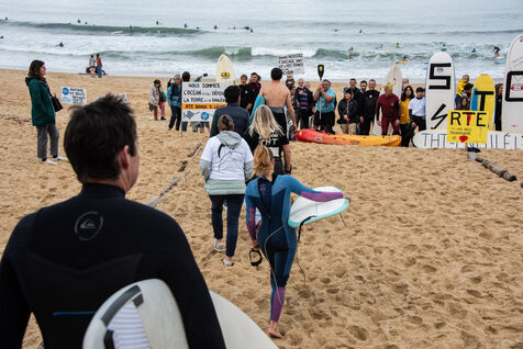 Les citoyens se sont retrouvés autour d'un nouveau rassemblement cette fois-ci à Capbreton pour lutter contre le projet de la RTE. Cette fois-ci les surfeurs ont sauté à l'eau et participé à leur manière. Participation remarquée de Maud Le Car et Joan Duru. Ainsi que de l'artiste Tom Frager