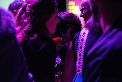 Dans la salle remplie, le meeting s'est achevé par un lancer de roses rouges, symboles du parti socialiste
