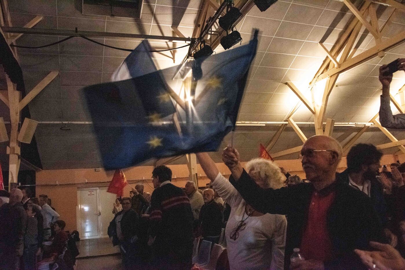 In the packed hall, the meeting ended with a throw of red roses, symbols of the Socialist Party.