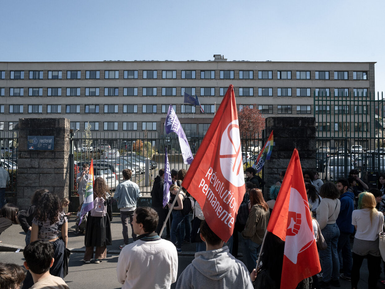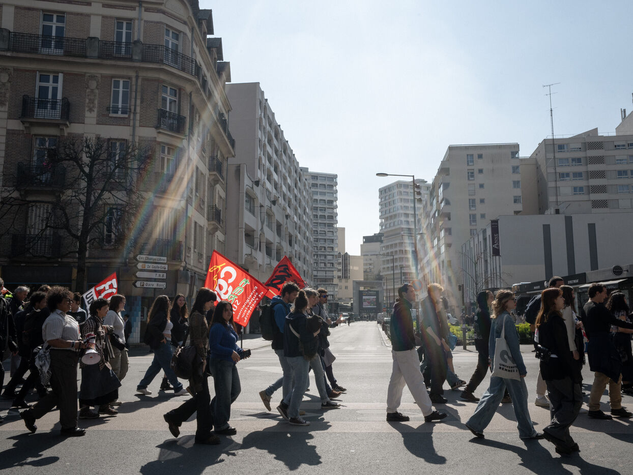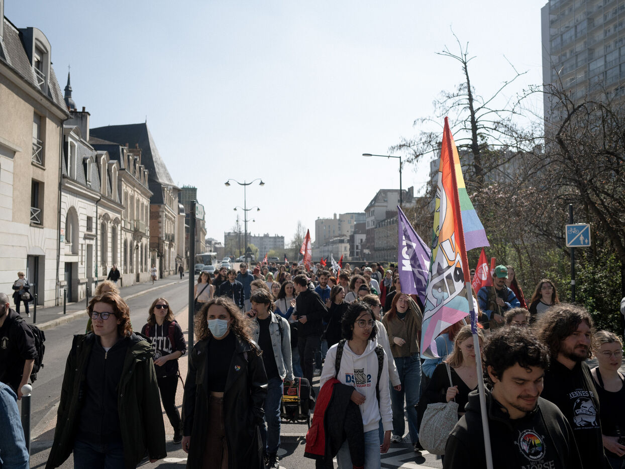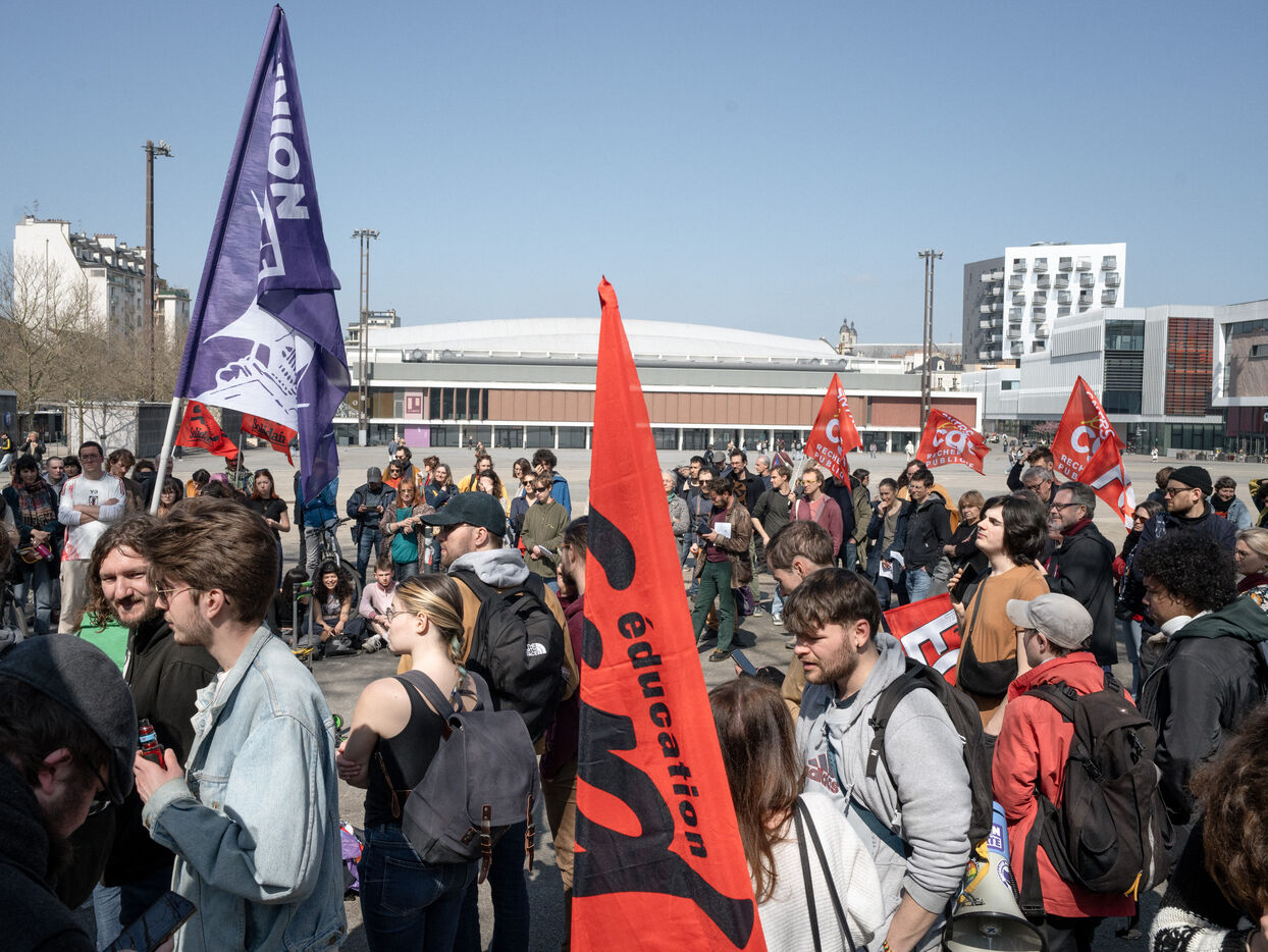 Étudiants et professeurs ont manifesté pour exiger plus de fonds pour l'université et la recherche à Rennes (Ille-et-Vilaine), le 27 mars 2025. De nombreuses organisations syndicales comme la CFDT, la CGT, FO ou Solidaires avaient appelé à manifester.