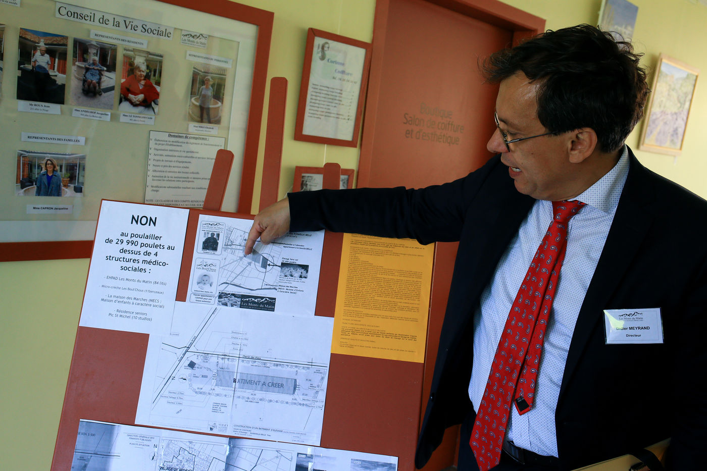 Didier Meyrand, directeur de l'EHPAD les Monts du Matin conteste et s'oppose à l'installation et à la construction d'un poulailler industriel de 29 990 poulets à côté de son établissement.