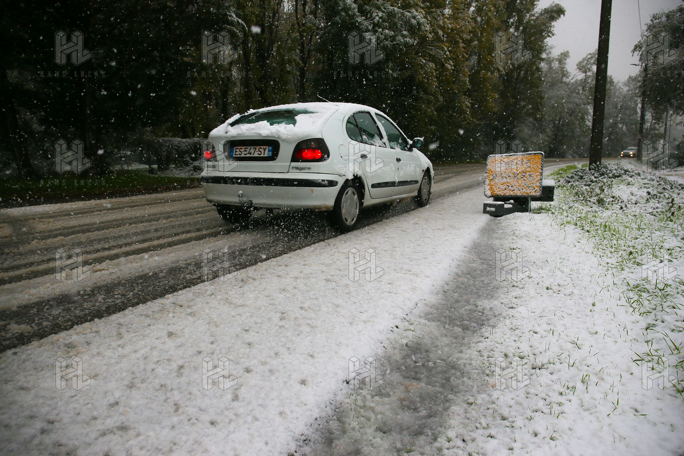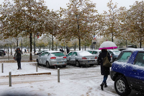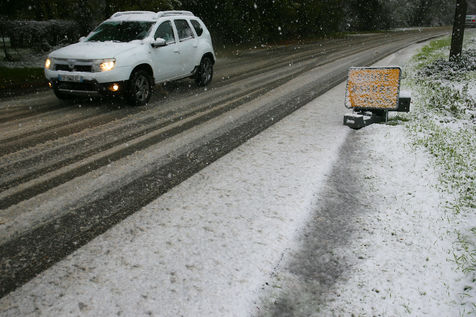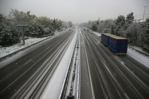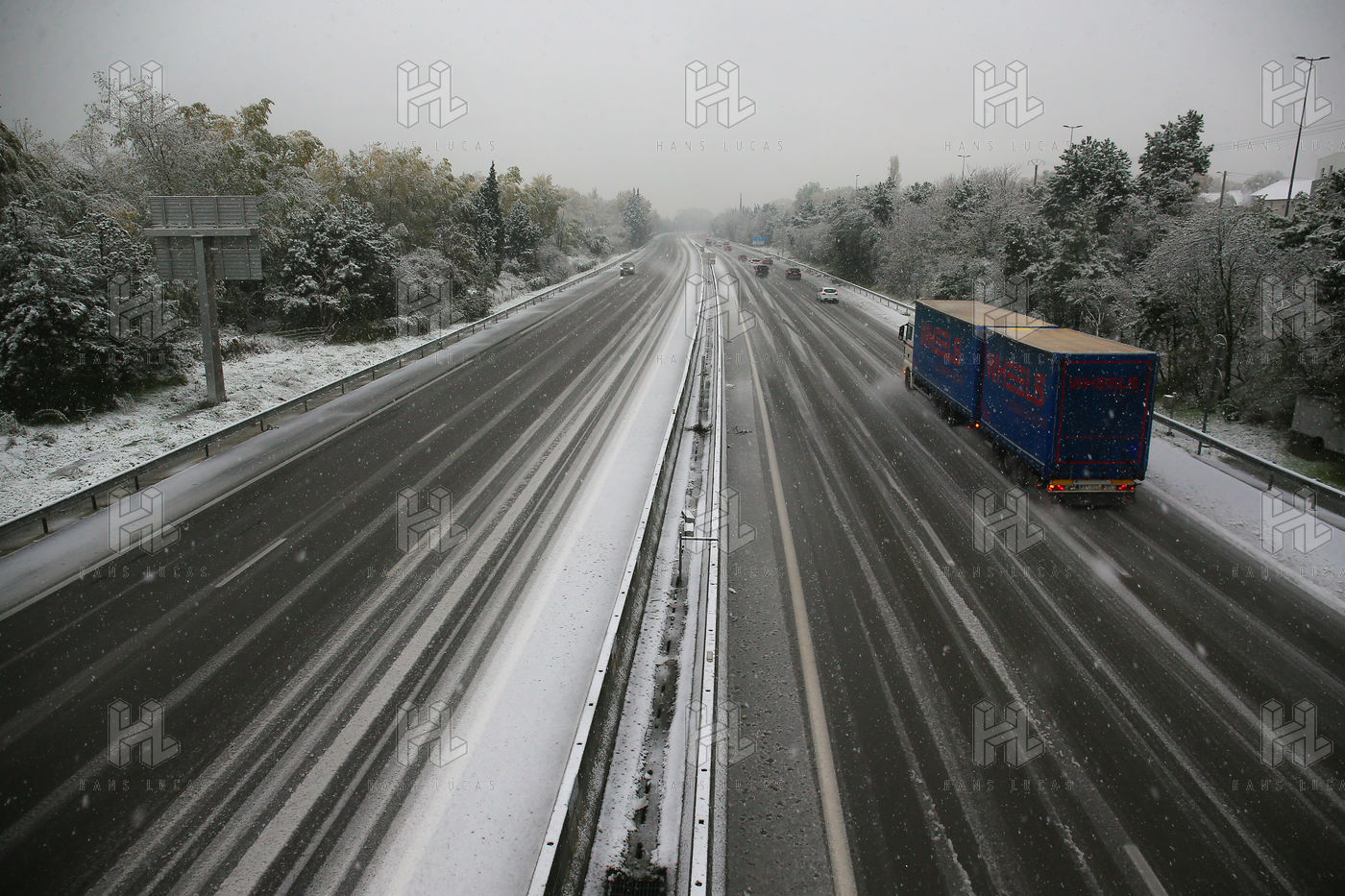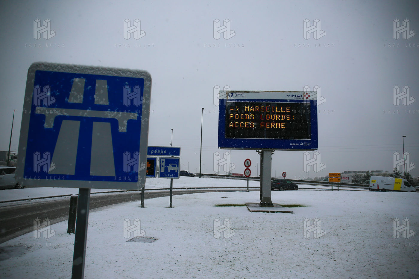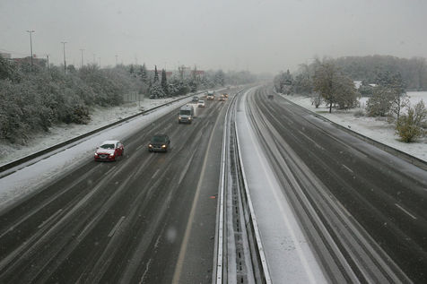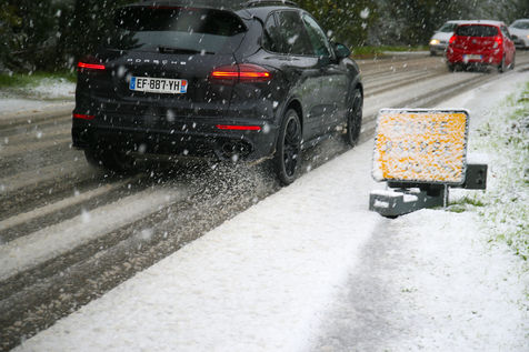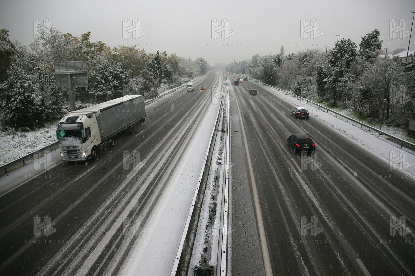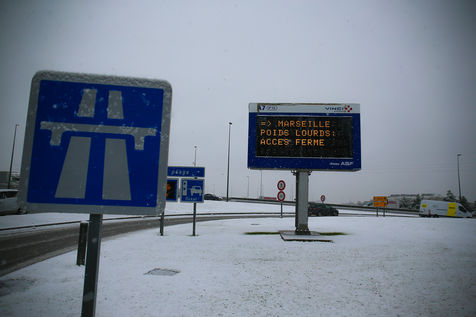 Premieres chutes de neige dans la Drôme qui a été placée en alerte orange. La circulation routière est fortement perturbée et l'accès à l'autoroute est interdit aux Poids-Lourds.