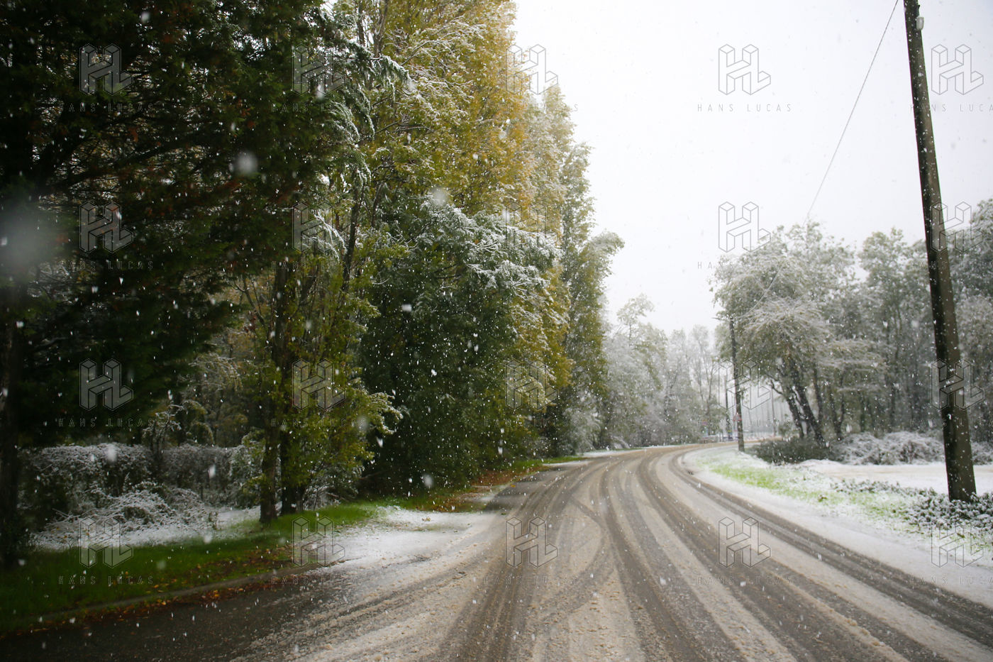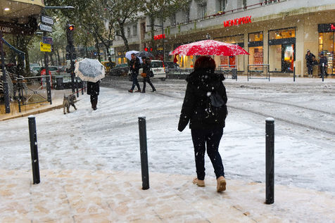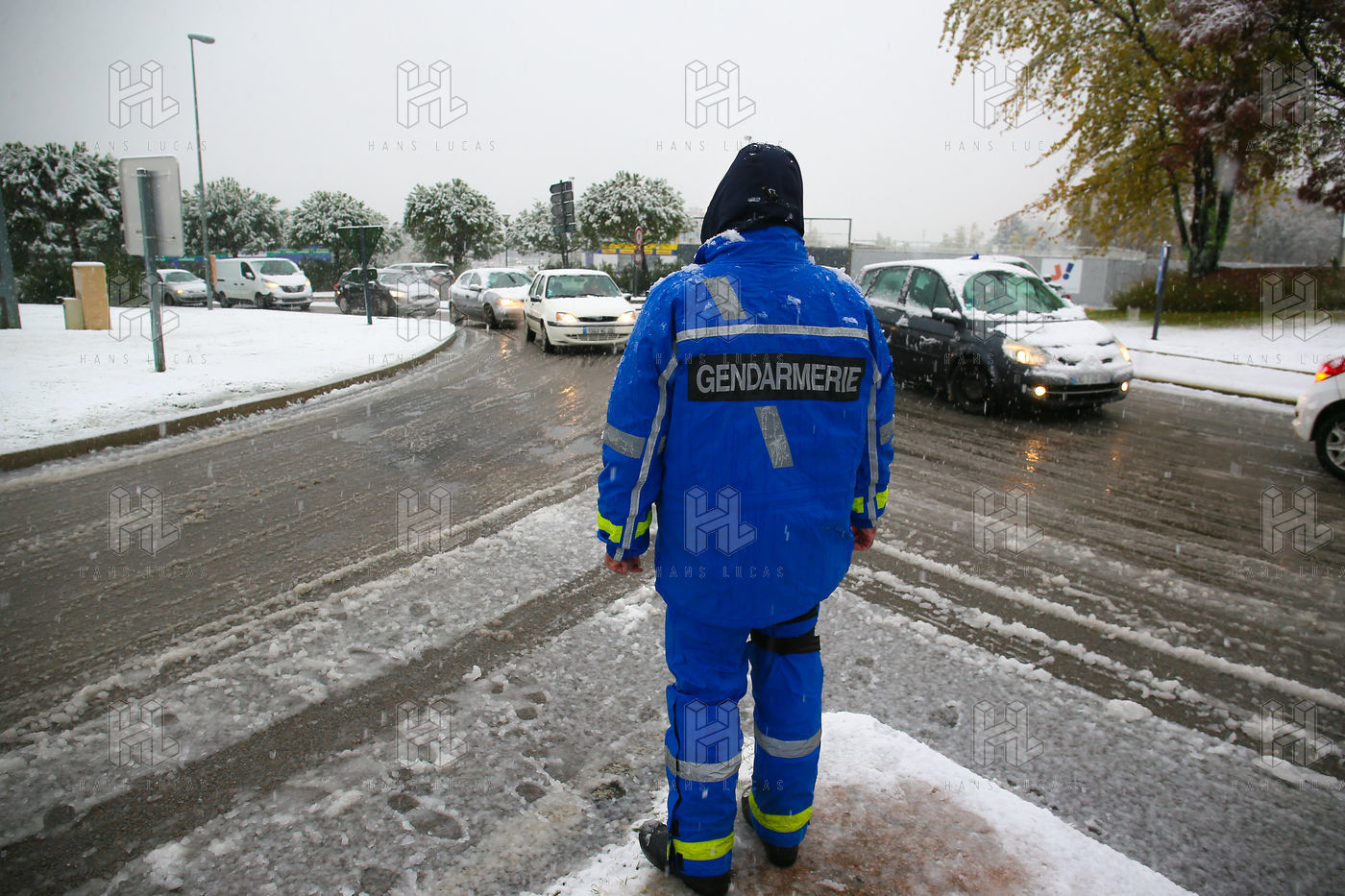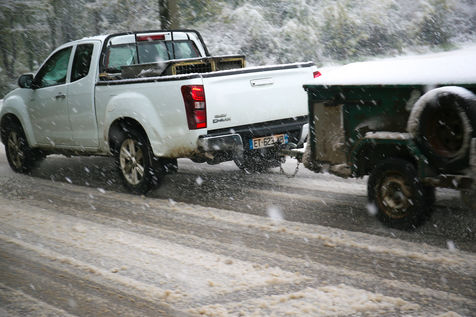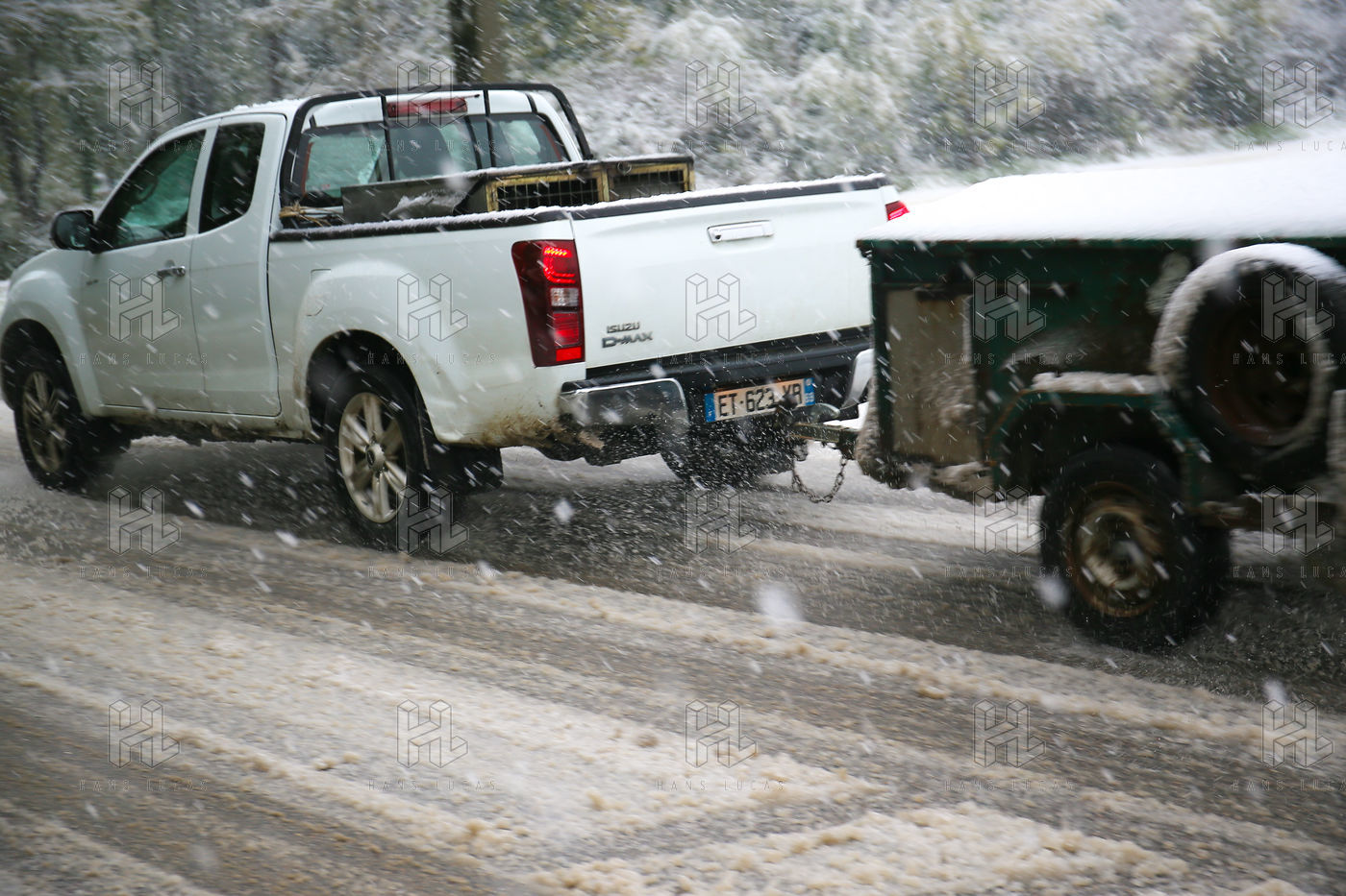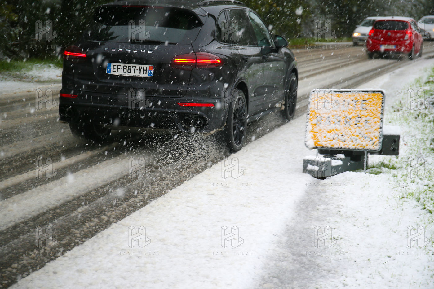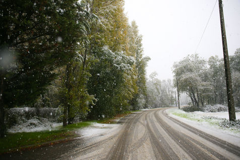 Premieres chutes de neige dans la Drôme qui a été placée en alerte orange. La circulation routière est fortement perturbée et l'accès à l'autoroute est interdit aux Poids-Lourds.