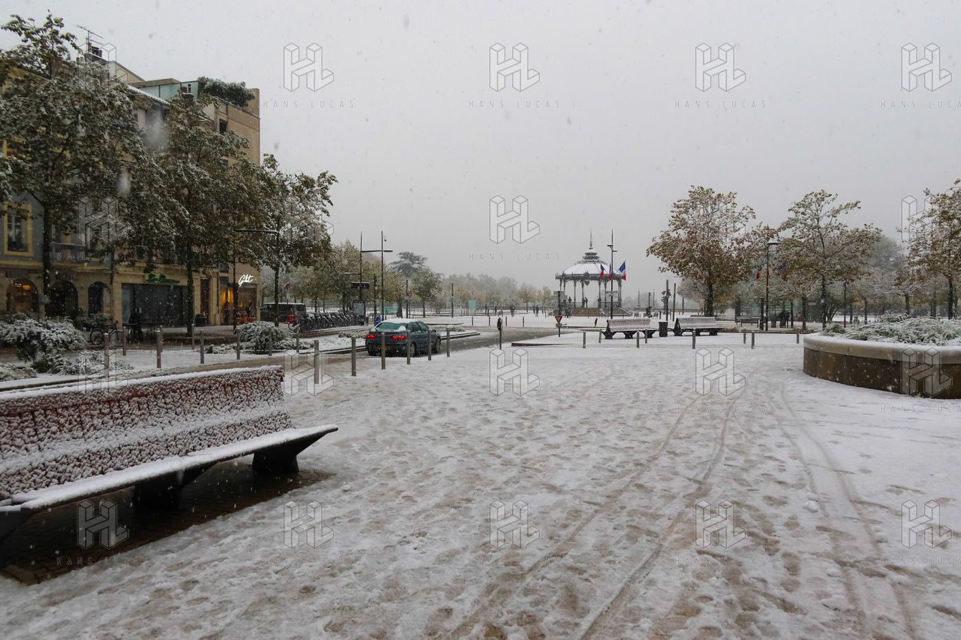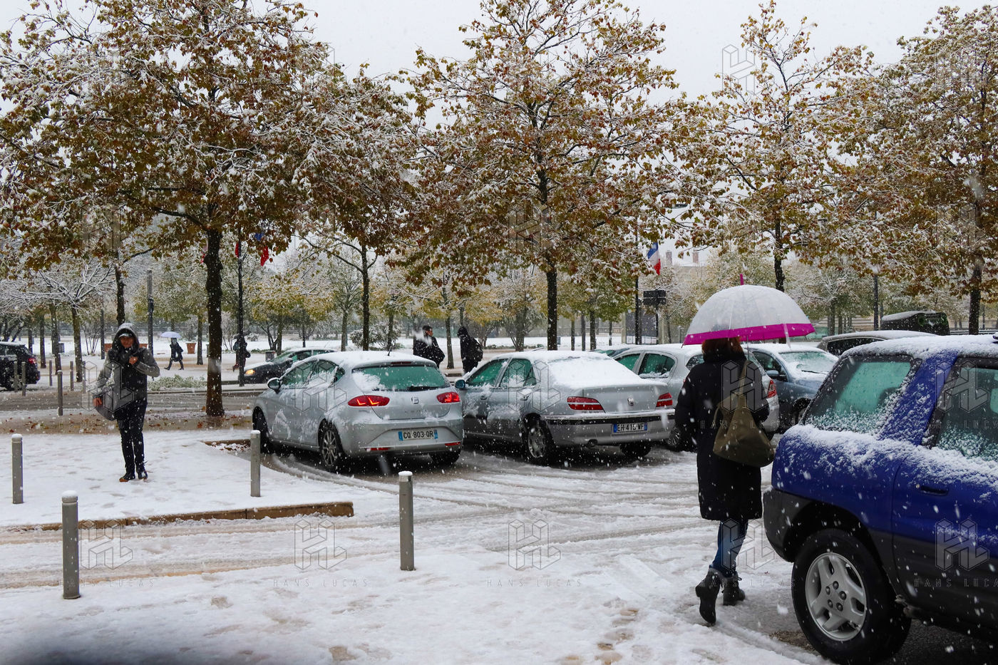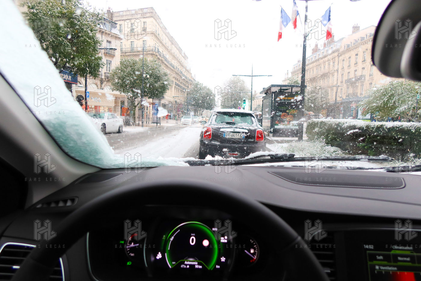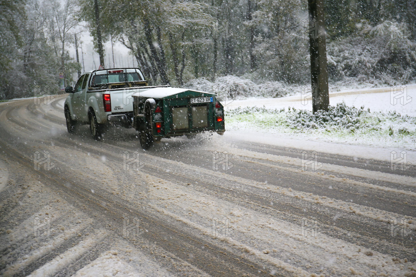 Premieres chutes de neige dans la Drôme qui a été placée en alerte orange. La circulation routière est fortement perturbée et l'accès à l'autoroute est interdit aux Poids-Lourds.