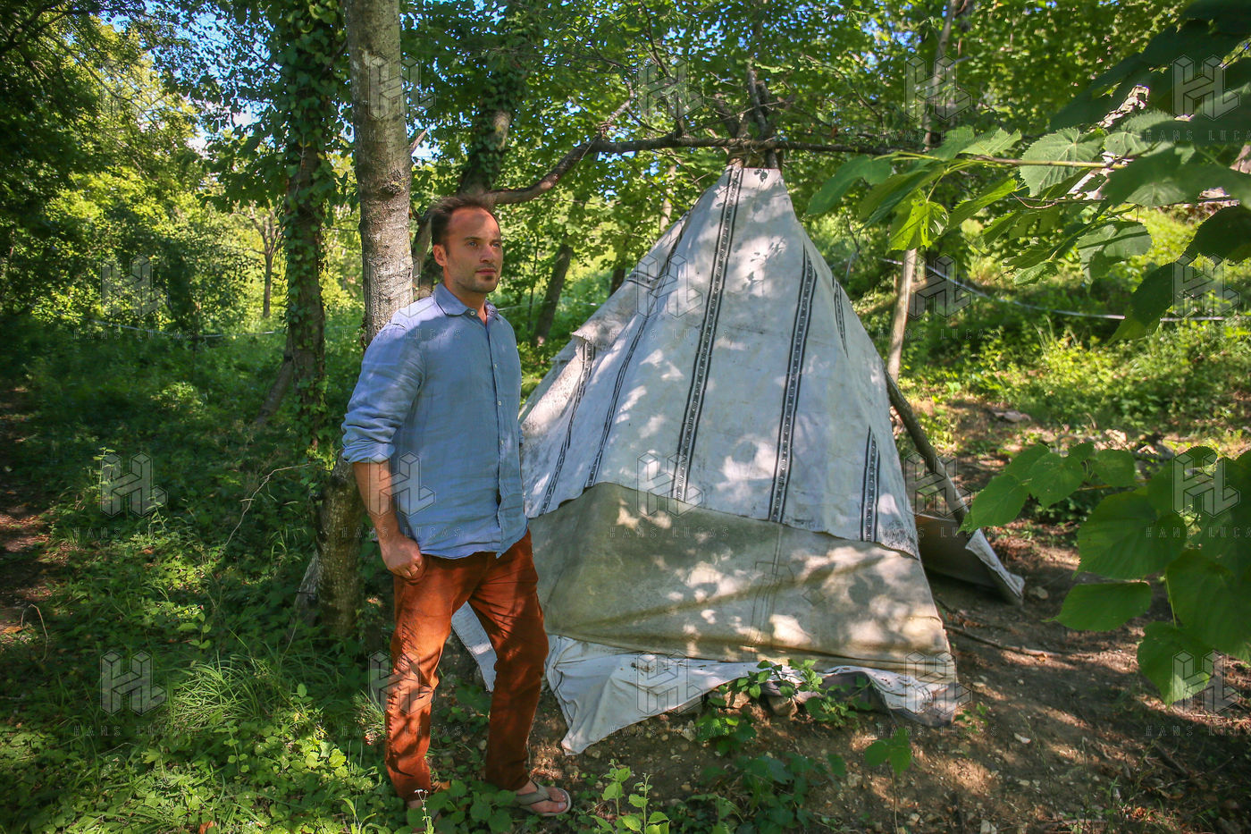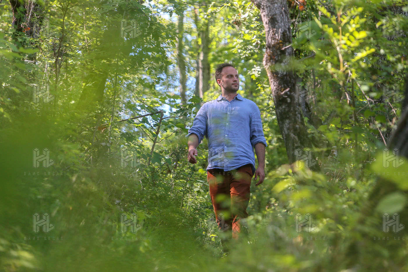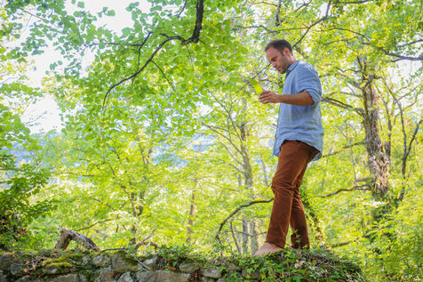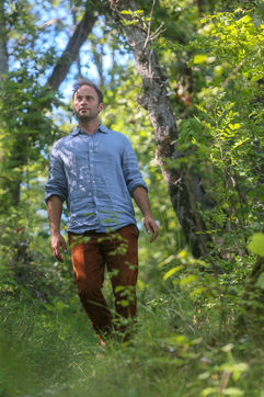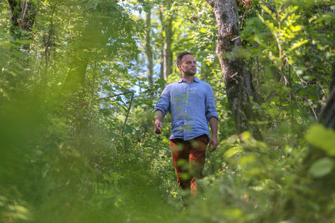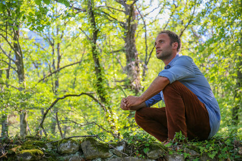 Portrait en forêt de Nans Thomassey, acteur et co-producteur de la série documentaire "Nus et Culottés" sur France 5.