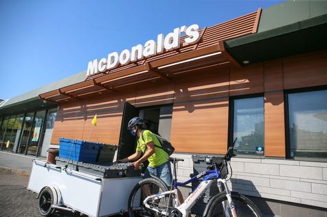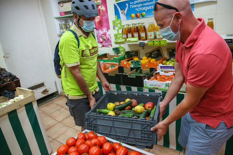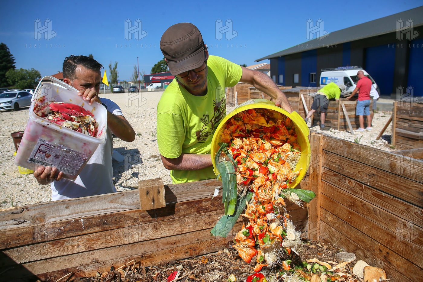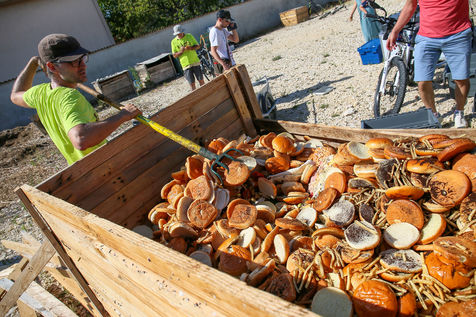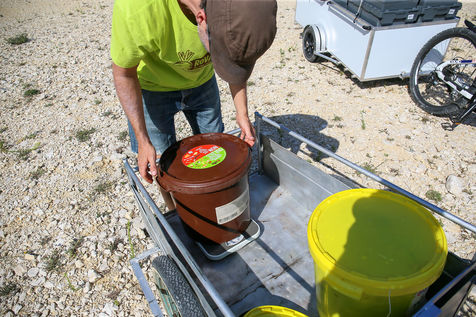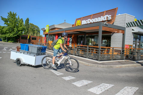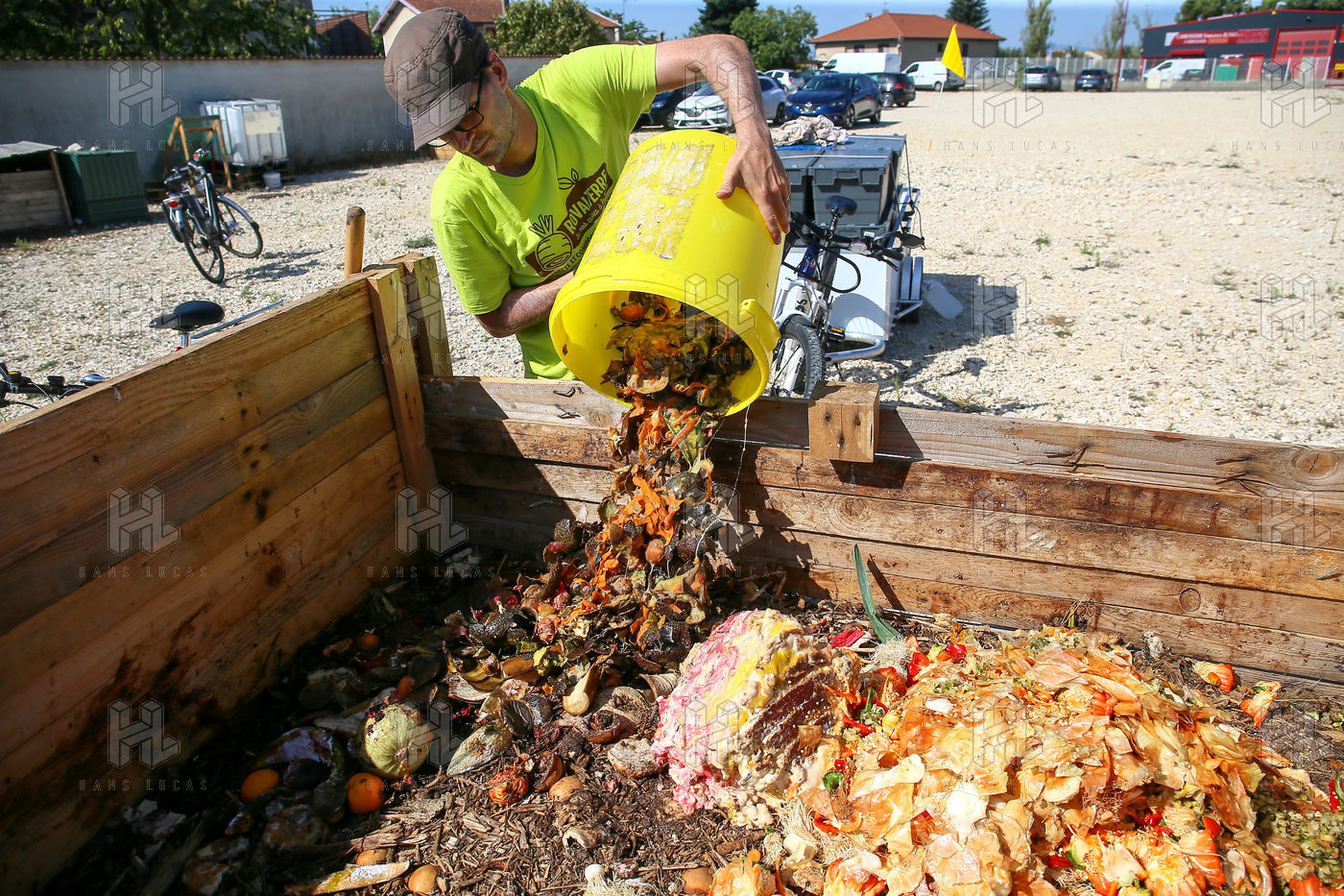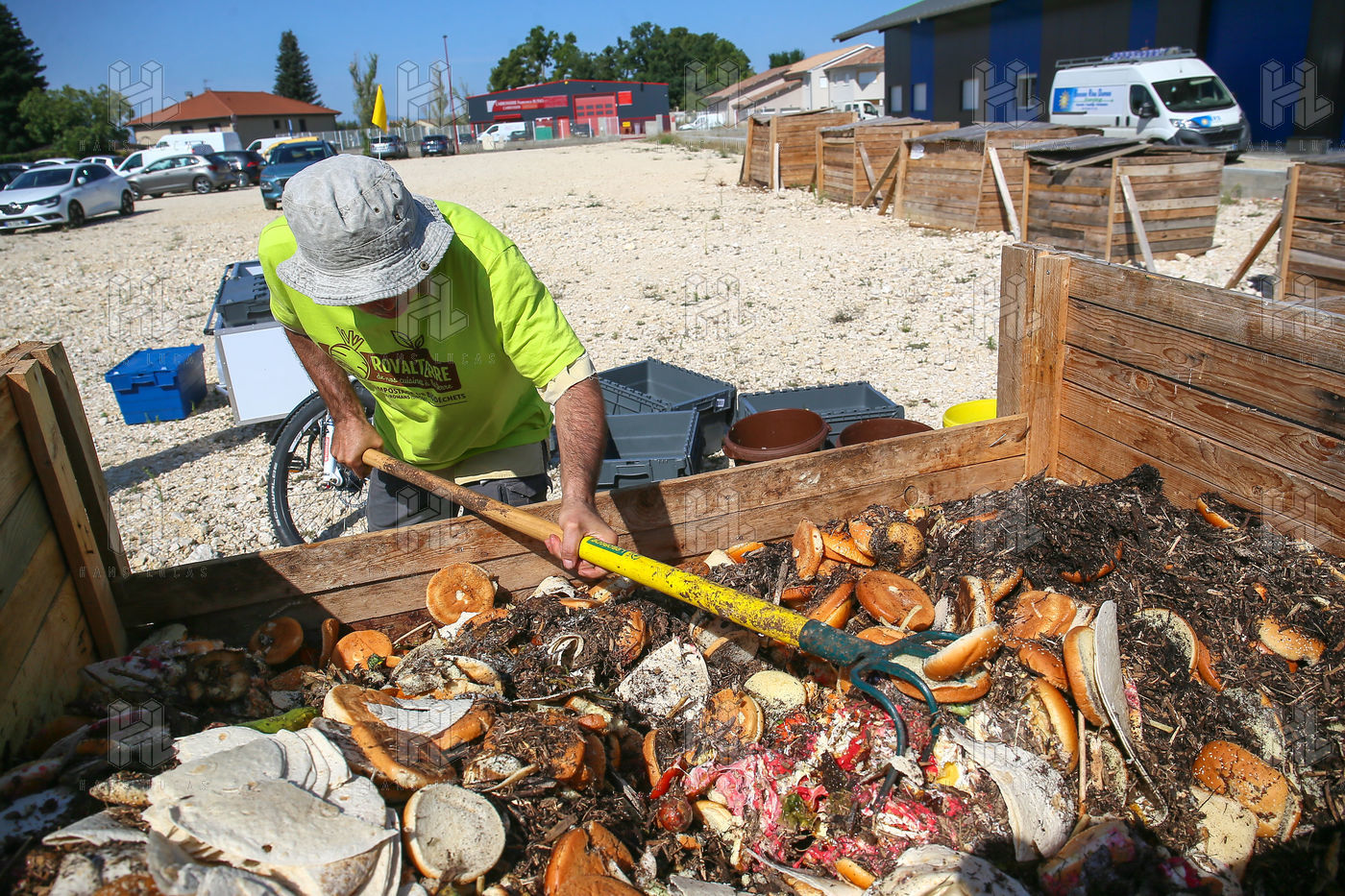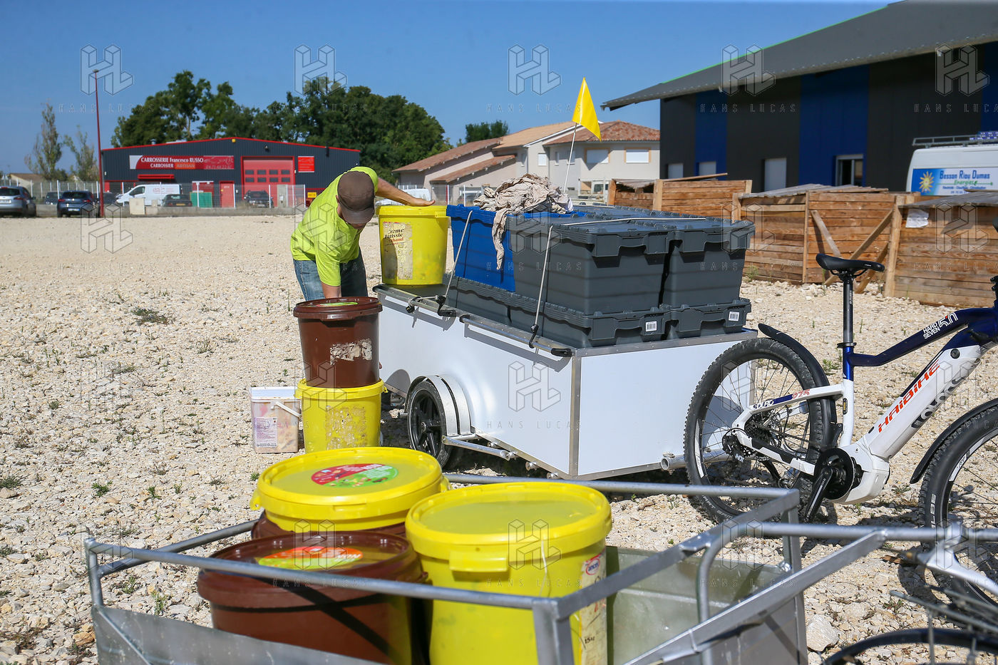 L'association ROVALTERRE effectue une collecte de biodéchets à vélo, deux fois par semaine, auprès des commerçants et professionnels de Romans-sur-Isère, pour les valoriser en compost. De l'épicerie au fleuriste en passant par le restaurant et le Mac Donald's, ils collectent plus de 500 kilos par semaine auprès de 12 partenaires.