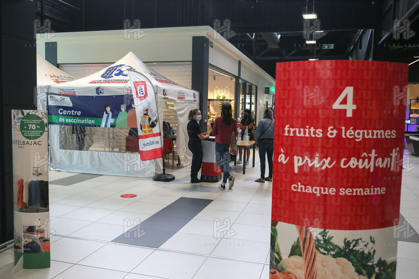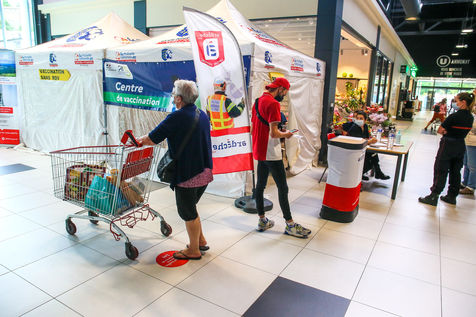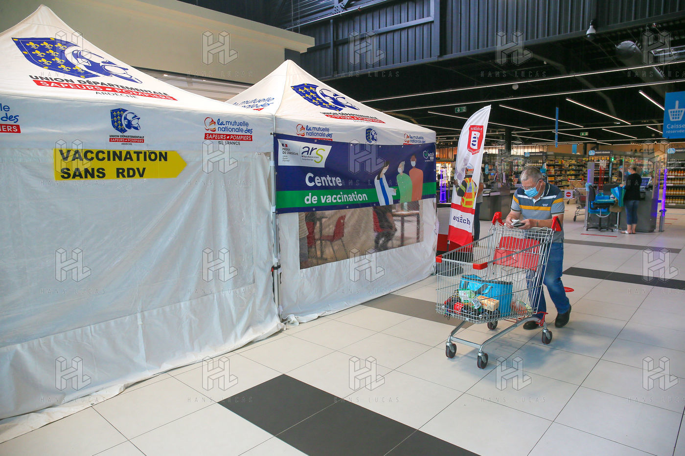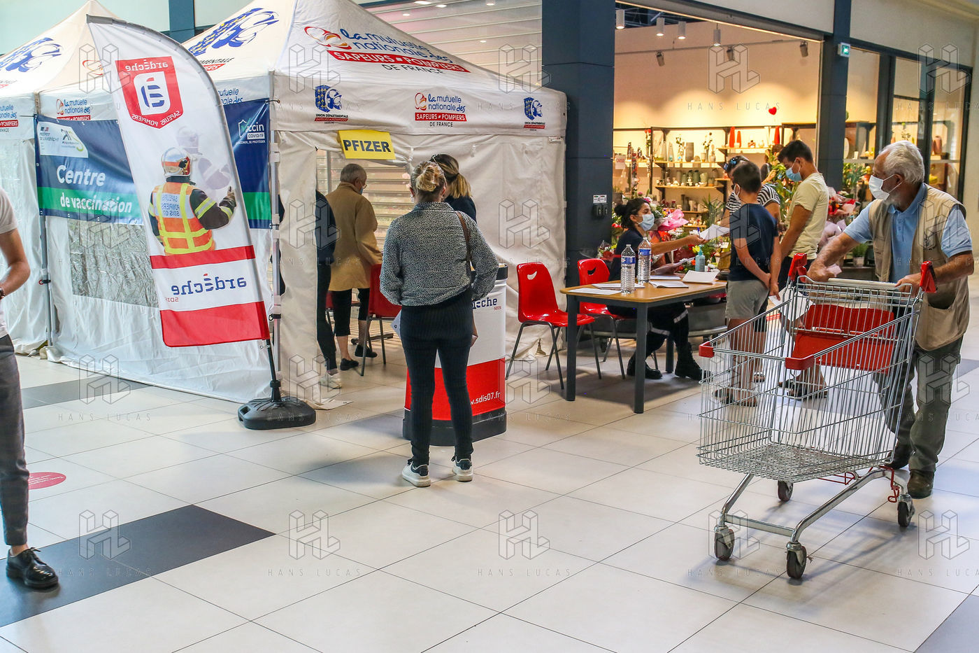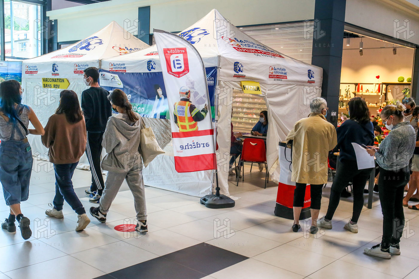 Pour encourager la vaccination contre le Covid 19, l'ARS de l'Ardèche et les Sapeurs Pompiers organisent une séance de vaccination sans rendez-vous dans la galerie marchande d'un supermarché Super U.