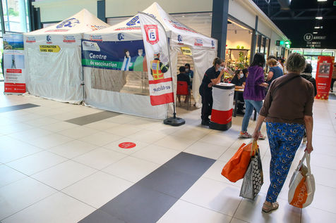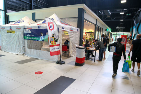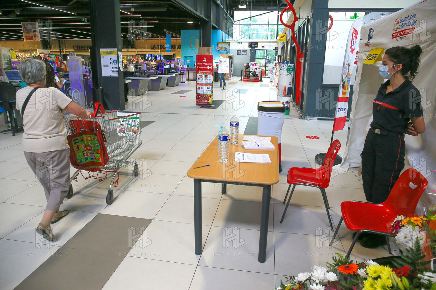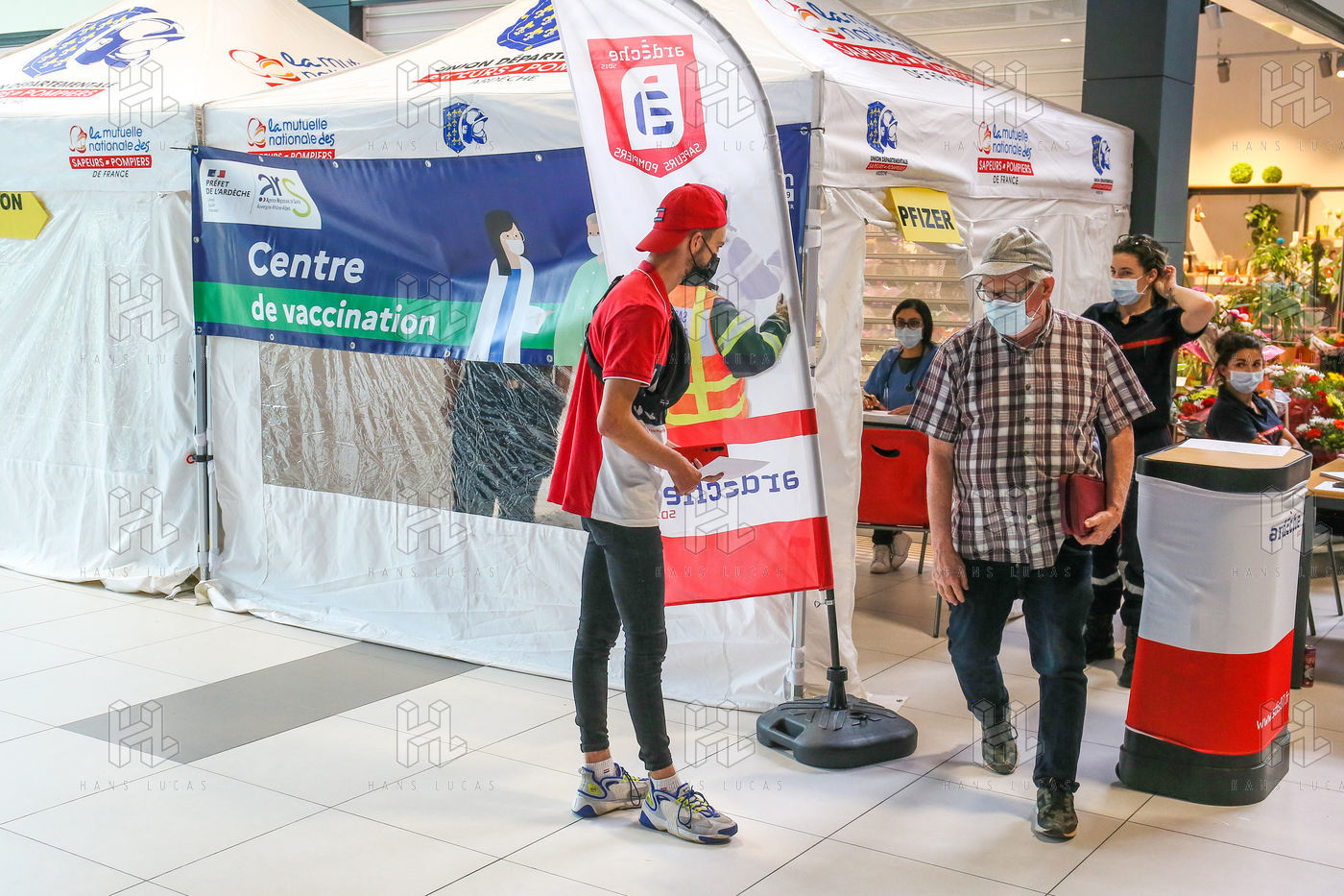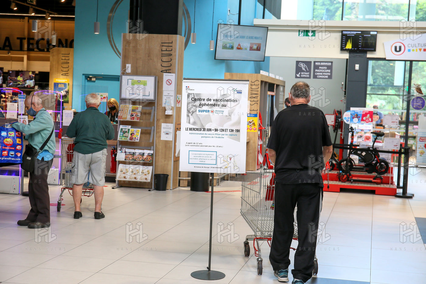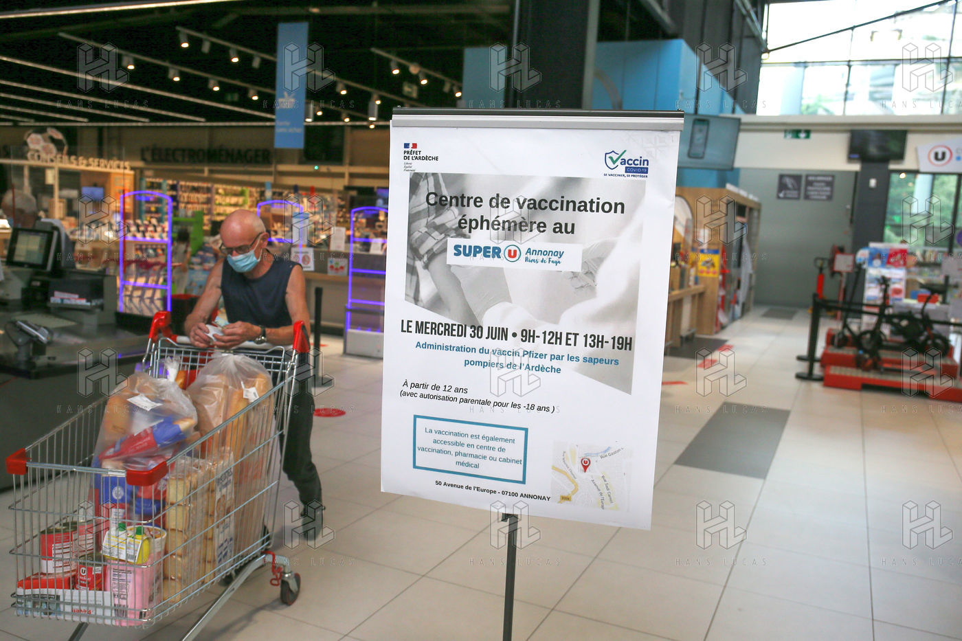 Pour encourager la vaccination contre le Covid 19, l'ARS de l'Ardèche et les Sapeurs Pompiers organisent une séance de vaccination sans rendez-vous dans la galerie marchande d'un supermarché Super U.