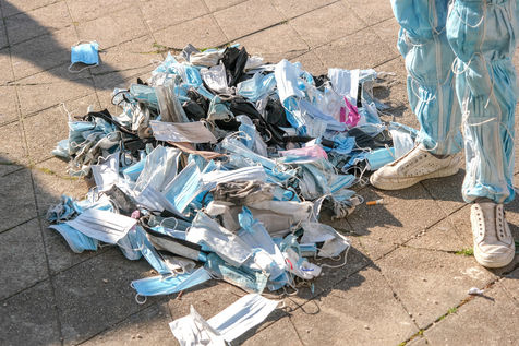 RUNNING AROUND COLLECTING USED MASKS