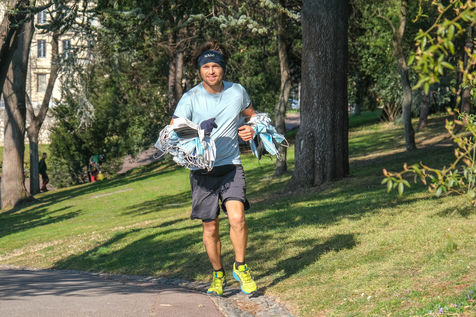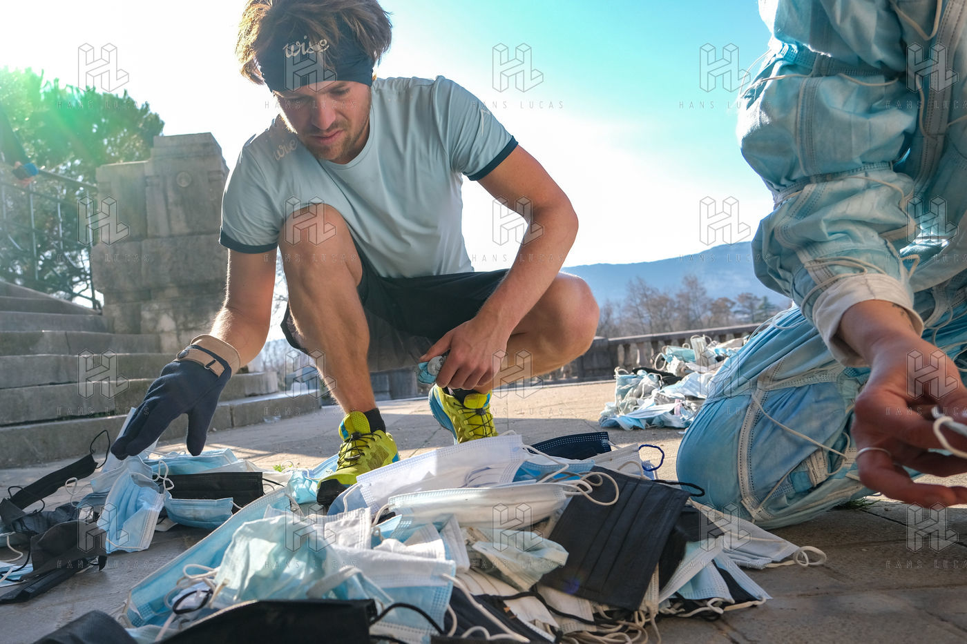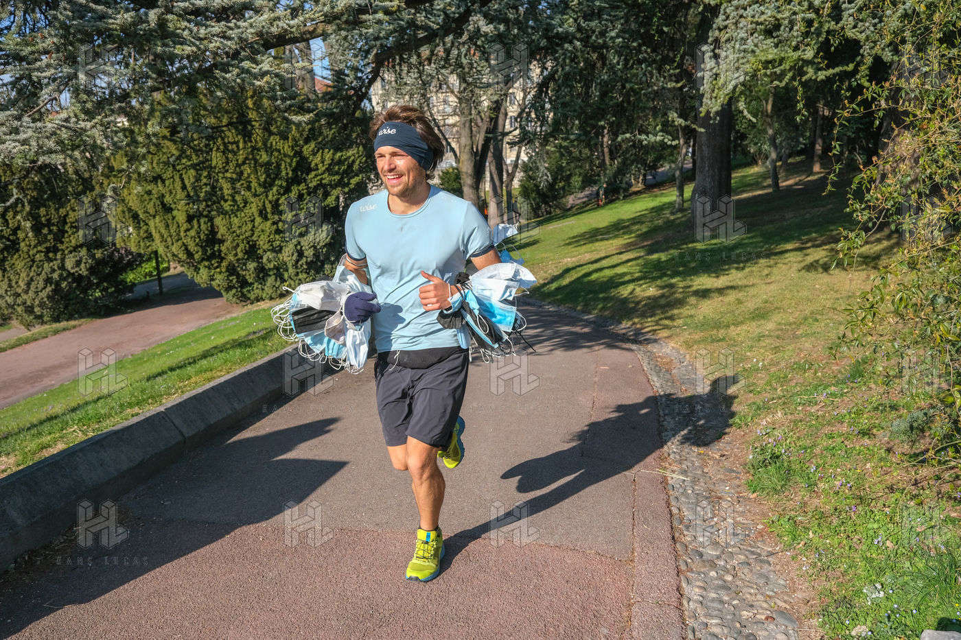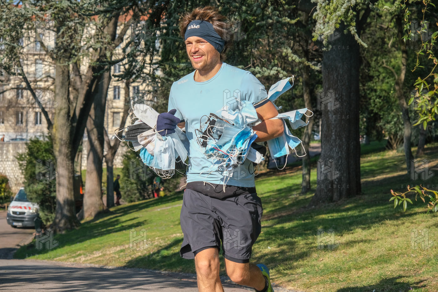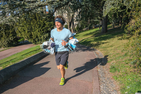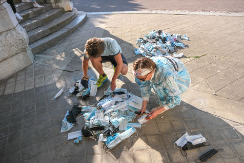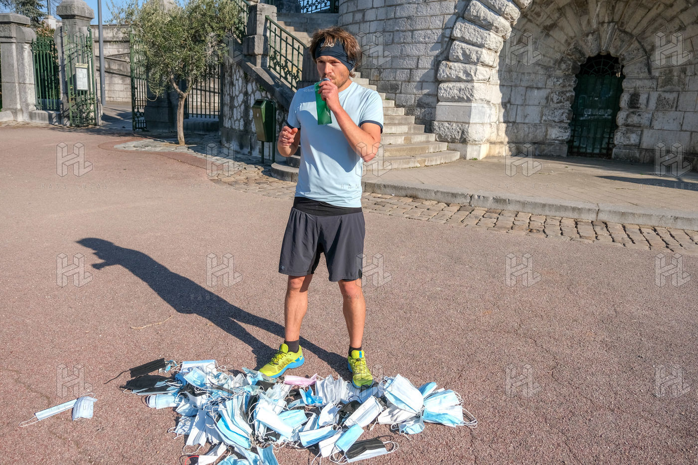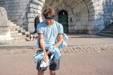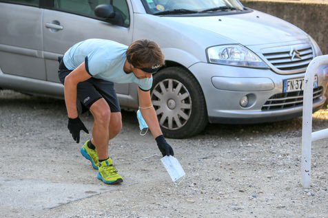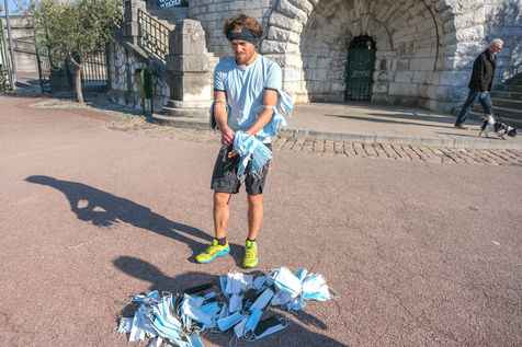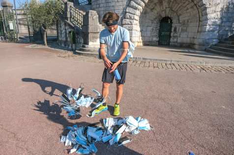 The eco-adventurer Clément Chapel, founder of the Ploggathon association, is organising the Maskathon Week in the Rhône Valley. Every day for a week, he runs a marathon (42.2 km) through the streets of several towns in the Rhône-Alpes region, collecting masks abandoned in the streets.